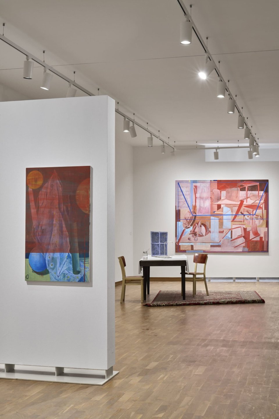 Výstava Padá ticho v GMU v Hradci Králové představuje novou sérii maleb Nikoly Kopp Lourkové, v nichž se ticho stává prostorem soustředění a jemného pozorování. Autorka nechává běžné předměty – židle, jablka, nádoby, špendlíky či fragmenty těla – vystupovat z vrstvené, měkké barevnosti jako vzpomínky zakotvené v osobní zkušenosti. Motivy se objevují spíše v náznaku než v popisu, jako by se pomalu vynořovaly z mlžného pozadí. Malba pracuje s křehkou paletou růžových, okrových a tělových tónů, které doplňují výraznější barevné akcenty a jemně přerušené linie. Ticho zde není prázdnotou, ale pozorností – chvílí, kdy se svět ukazuje v detailech, jež jindy unikají.