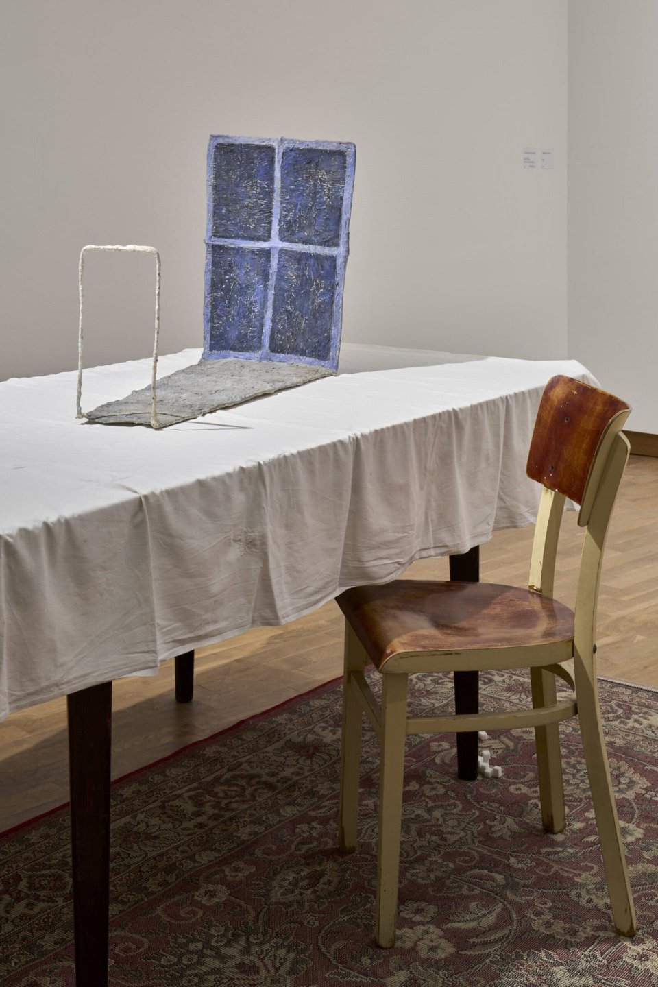 Výstava je doplněna dílem Jitky Svobodové Dveře a okno (1981). Obě umělkyně spojuje zájem o obyčejnost a její vizuální potenciál: Svobodová tak činí skrze prostor, světlo a tvar, Kopp Lourková prostřednictvím vrstvené barvy, průhlednosti a malířského gesta. Výstava tedy představuje tiché setkání dvou různých způsobů soustředěného vidění. Padá ticho je pozváním k zastavení: k pohledu, který nic nebude hledat, ale nechá věci být – a tím je nechá znovu zaznít.