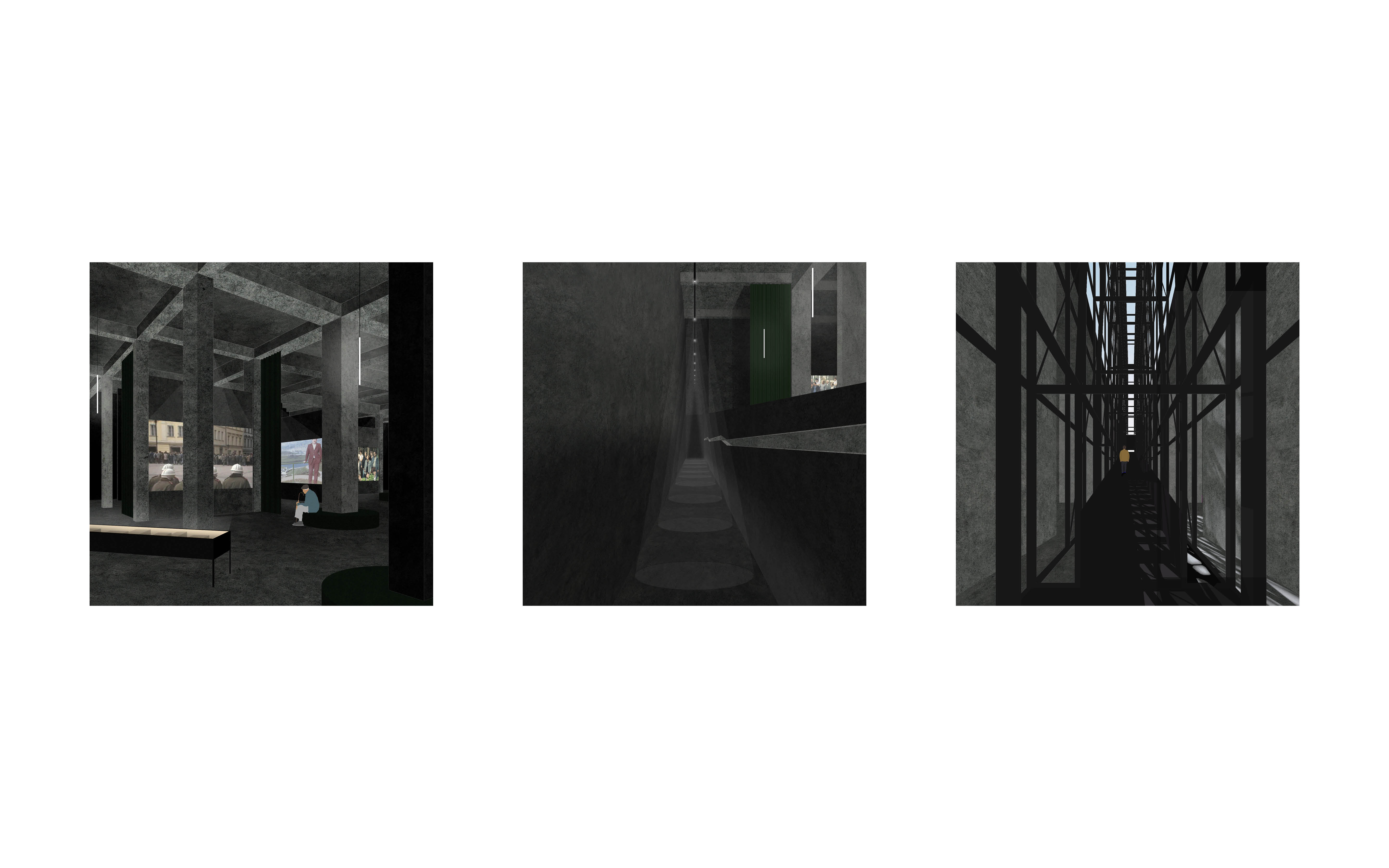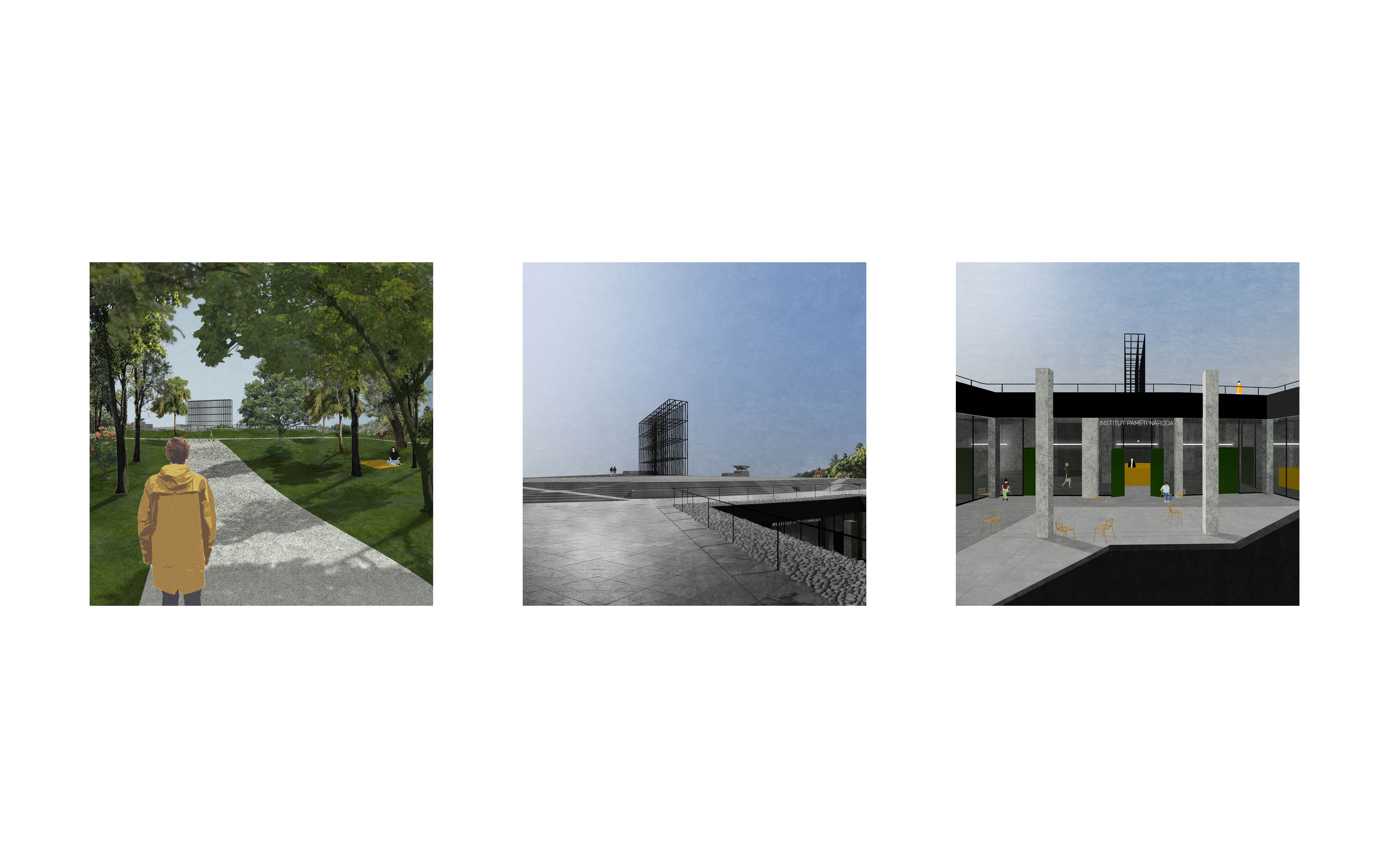 Navrhuji Institut paměti národa do podzemí bývalého Stalinova pomníku na Letné. Vzniká zde archiv, kanceláře institutu, knihovna se studovnou, bookshop, kavárna, multifunkční sál a kinosál. Téměř polovinu plochy věnuji výstavě Příběhů 20. století. Vrcholem výstavy je výhled na Prahu skrz sokl, z nějž na povrch vyrůstá lešení – symbol opravy starého, výstavby nového, připomínka toho, co zde kdysi bylo. Svým zásahem nemažu paměť místa, pouze přidávám novou vrstvu.