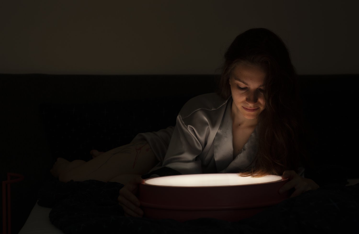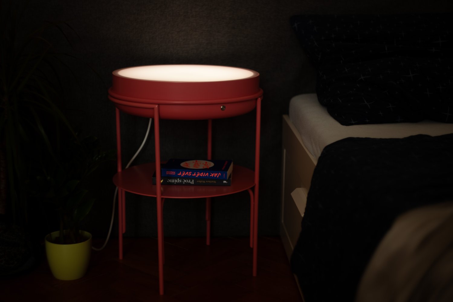 Diplomová práce je zaměřená na návrh interiérového svítidla určeného pro domácí fototerapii. Zkoumá využití plnospektrálního světelného zdroje v kombinaci s vhodným tvaroslovím produktu. Jelikož má fototerapie probíhat ihned po probuzení, rozhodla se autorka svítidlo zakomponovat do konstrukce nočního stolku.