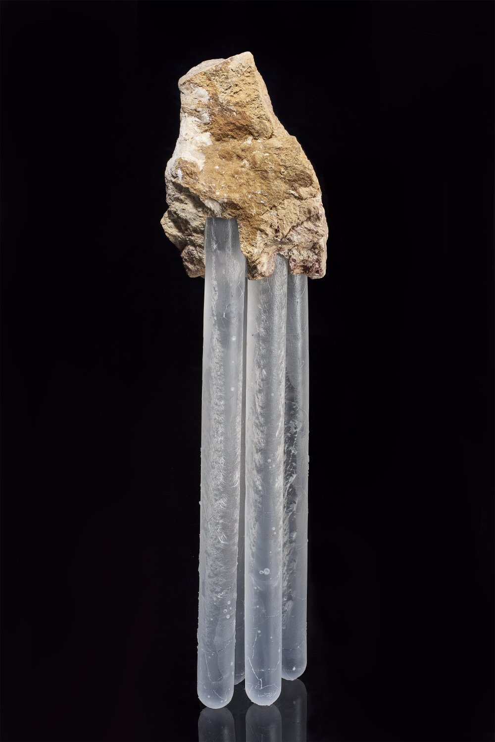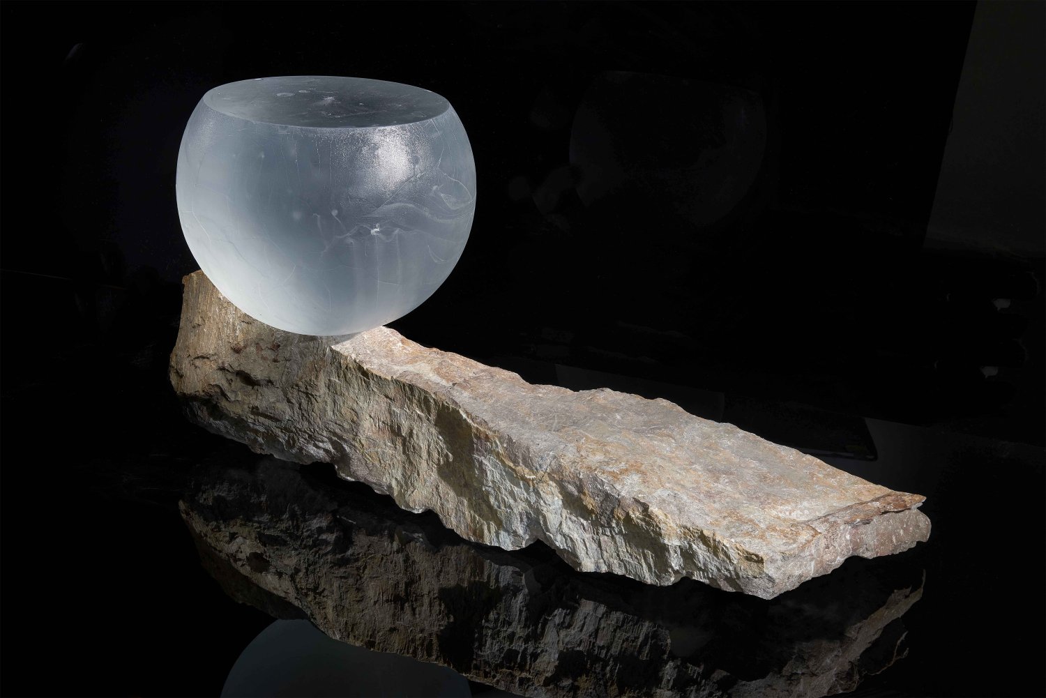 Diplomová práce se zabývá pojem monumentality, tím jak ji lidé vnímají a také aplikací těchto prvků do skulpturálního designu. Dva objekty tvoří kombinace taveného křišťálového skla a červeného mramoru. Tyto konstelace mají za cíl vzbudit v divákovi emoce spojené s pocity ohrožení a nerovnováhy. Zároveň je pomocí těchto objektů zkoumána hranice funkčnosti. Vzhledem k použití hrubého lomového kamene, dochází k jistému momentu unikátnosti.