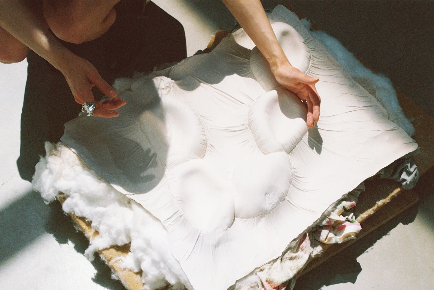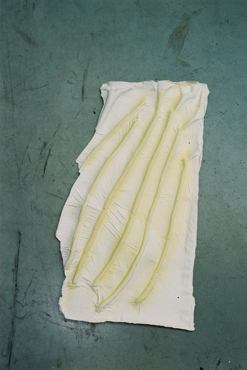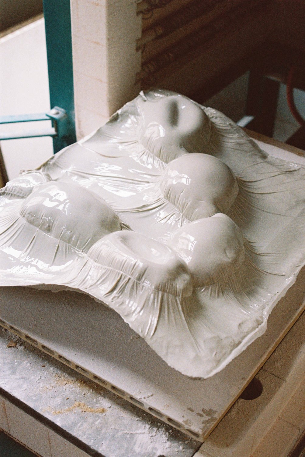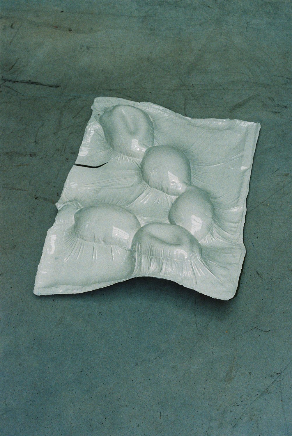 Utváranie identity ako kontinuálneho procesu premeny. Svoje porozumenie pojmu identity, vychádzajúcej z koncepcie teoretika psychológie Erika Eriksona, budujem v konfrontácii s materiálmi. Keramika nesie hmatateľnú stopu premeny, ktorú uchopujem ako liniu prevedenú do priestorových diel. Premeny materiálu a etapy premien v procese sú podporené textilným materiálom, ktorý mi slúži ako pomocné medzistupňové médium na dosiahnutie jemných delikátnych stôp. Fascinuje ma skúmanie estetiky, ktorá je tvorená rôznymi fázami deštrukcie, vlastného pohybu a podnecuje vo mne dialóg medzi dvoma opozitnými materiálmi - mäkkým a poddajným textilom a pevným no zároveň krehkým porcelánom.