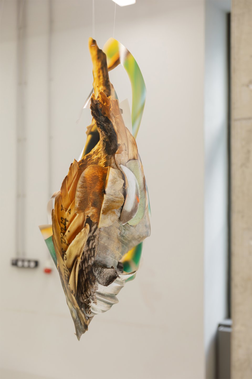 Fotografické koláže v prostoru jsou reakcí na radikální proudy spojené s mužskou identitou, které v současné době sílí nejen ve virtuálním prostoru. Snaží se pomocí jemnosti, křehkosti a empatie vymezovat vůči představám tzv. manosféry o ideální podobě maskulinity a vůči nenávisti, která je s touto skupinou lidí často spojena. Práce je na pomezí mezi šperkem, fotografií a sochou, jejichž rozšířená pole se snaží zkoumat. Kombinace právě těchto médií je praxe, které se ve své volné tvorbě věnuji již několik let.