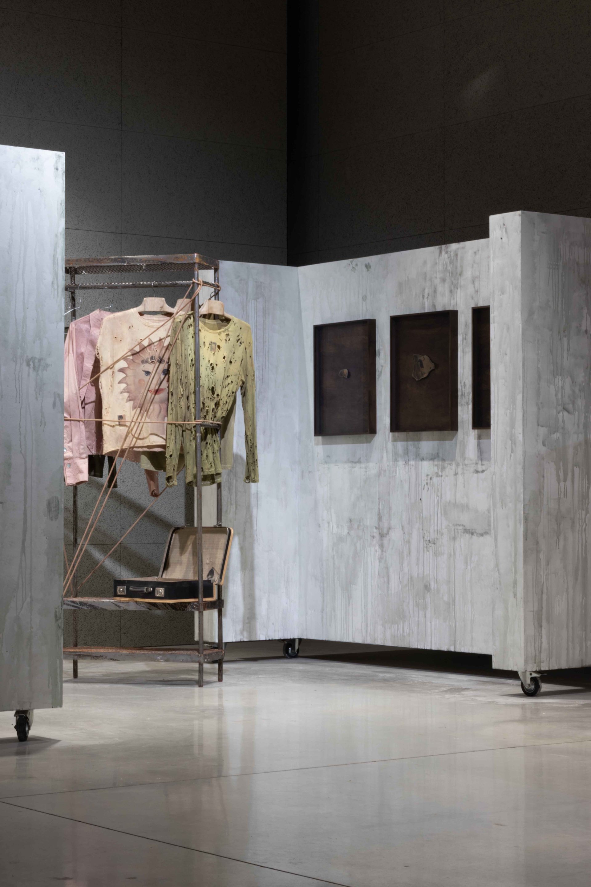 Instalace Fracture of the Sun reflektuje autorovu osobní zkušenost z queer dospíváním a zpětným procesováním traumatických zážitků. Dílo vypráví o queer hanbě, samotě a eskapismu. Práce prezentuje fragmenty osobního archivu, které autor zpracovává s využitím ruční práce s různorodými materiály. Pracuje s tiskem fotografií na textil a kůži, ruční výšivkou a nášivkou, které v objektových a kostýmových prvcích evokují proces ztráty, opotřebení a časovosti. Kovová konstrukce symbolizující šatník je metaforou pro skrývání a uchovávání vzpomínek.