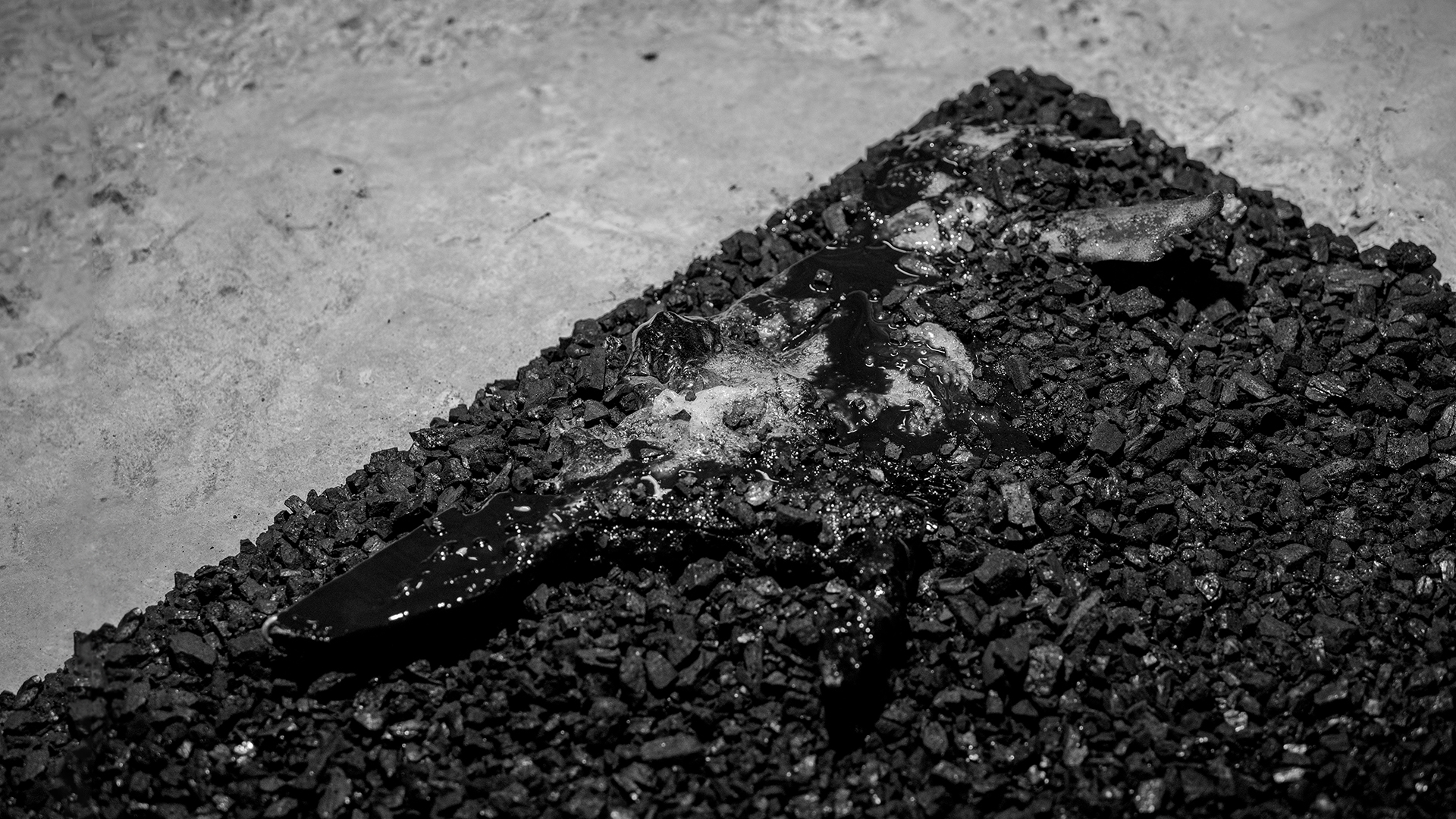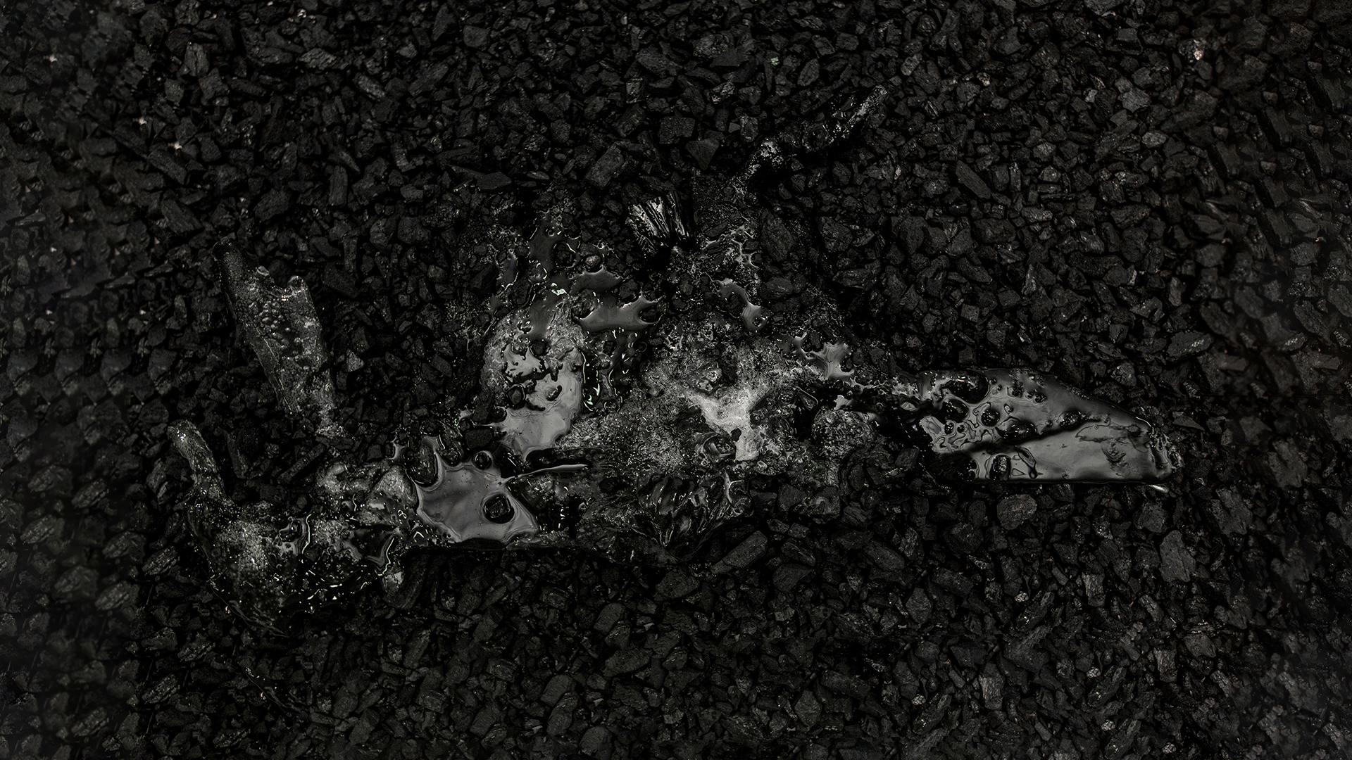 There is a combination of associations with the rest of the freedom of interpretation. Photoshop layers, rocks, road patch stripes and runway lines, forest fire residues.