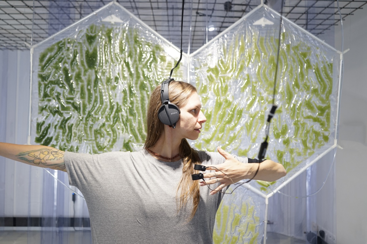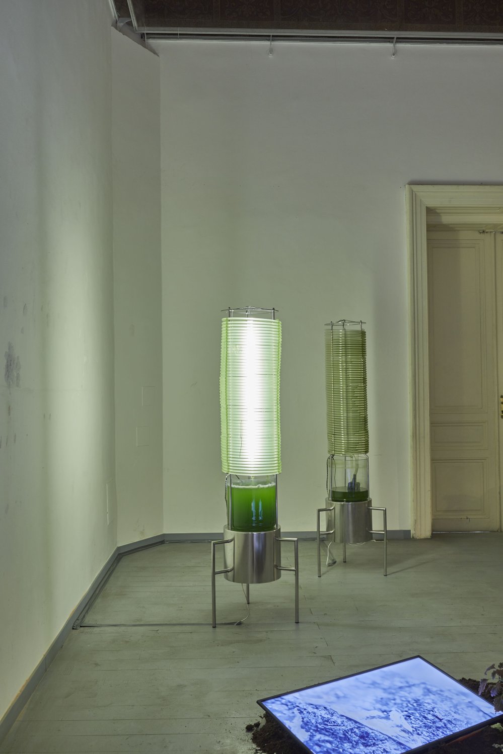 Veronika Miškovičová z UMPRUM s projektem Nástroje výměny zkoumá, jakým způsobem umíme propojit a rekonstruovat vodní ekosystémy. Skleněné struktury díky technologickým principům utvářejí druh ekosystému, v němž neustálý růst mikrořas absorbuje oxid uhličitý z okolního prostředí a zároveň produkuje pro nás potřebný kyslík.