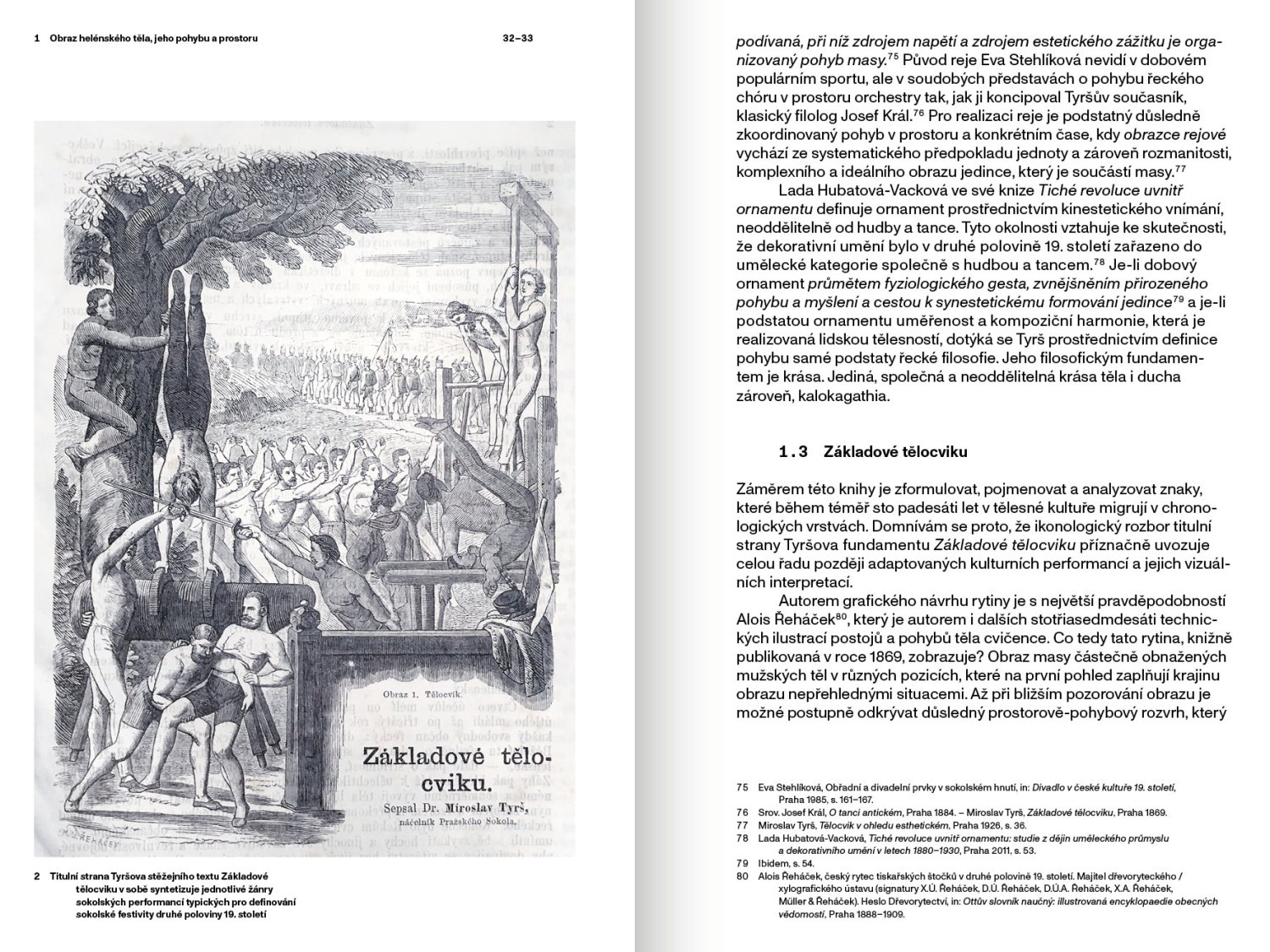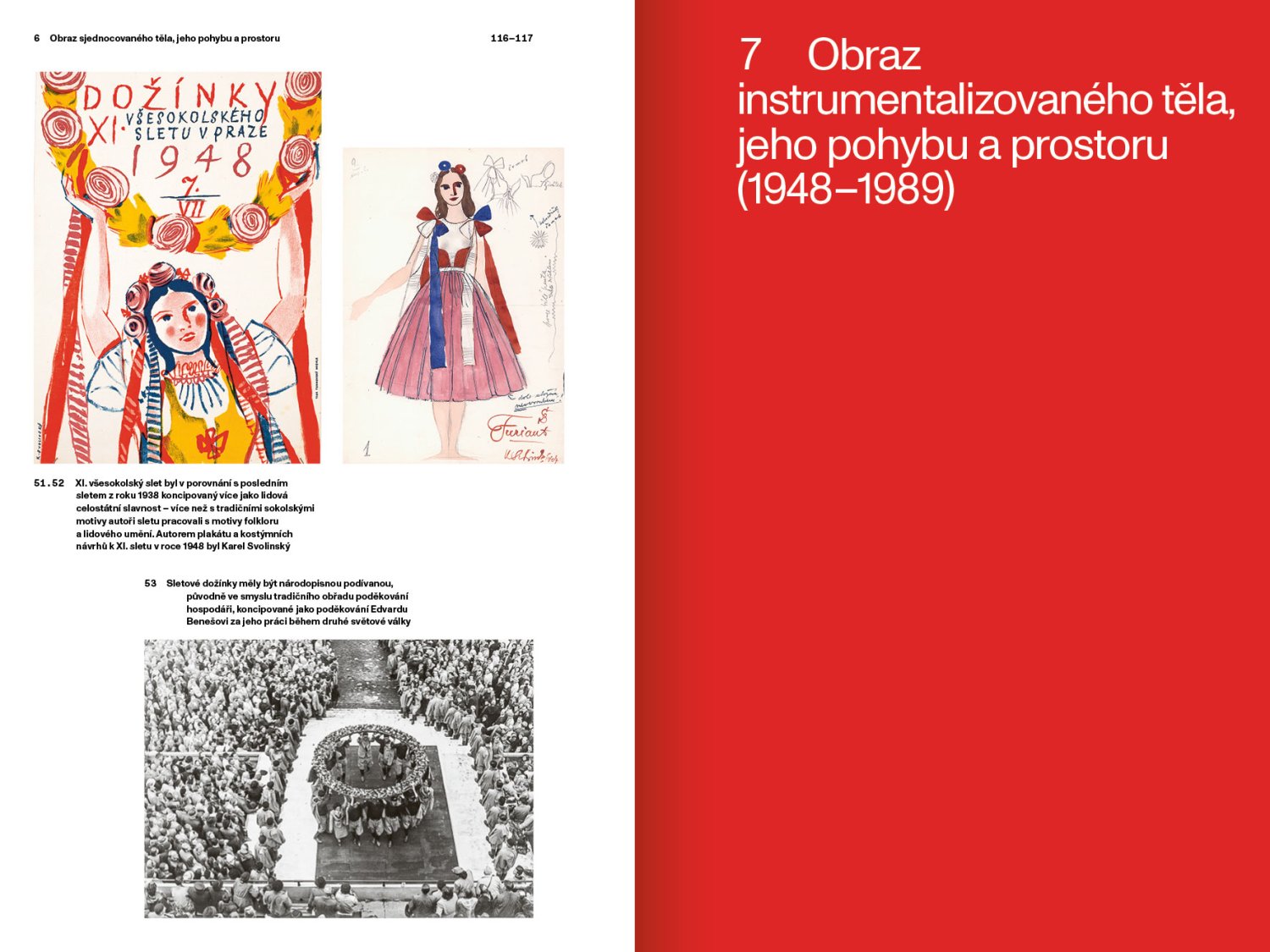 Publikace vychází z dizertační práce realizované pod vedením doc. Lady Hubatové-Vackové a obhájené na Katedře teorie a dějin umění UMPRUM v roce 2019. Ústředním tématem projektu je proměna vizuálních motivů a symbolů masových tělovýchovných performancí od šedesátých let 19. století do roku 1989. Struktura textu vychází z předpokladu, že vizuální motivy a symboly migrují a že se jejich význam mění na základě konkrétního společenského a kulturního kontextu. Proměna vizuální reprezentace tělesné kultury je analyzována prostřednictvím konkrétních vizuálních a performativních znaků v reprezentaci Sokola, dělnických tělovýchovných jednot, federace proletářské tělovýchovy a československých celostátních spartakiád. Grafika Tereza Hejmová.