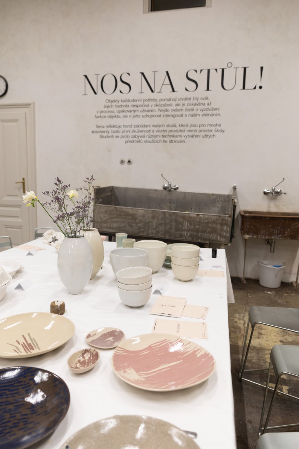 Ateliér keramiky a porcelánu: Obklad – návrh plastiky ve formě obkladu na stěny Technologického centra UMPRUM // klauzura: Nos na stůl – téma reflektuje trend malých studií, studie různých technik vytváření užitých předmětů pro stolování, propojení řemeslných dovedností a designu