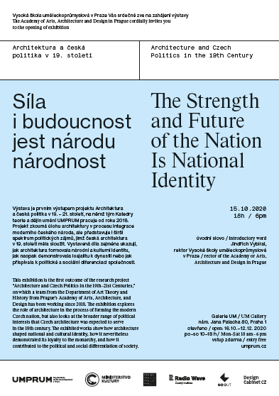 Jak se promítal nacionalismus do české architektury? A jak se v ní odrážel vztah občanů ke státu či koruně? Výstava v Galerii UM je prvním výstupem projektu Architektura a česká politika, na kterém už několik let pracuje tým odborníků Katedry teorie a dějin umění UMPRUM.