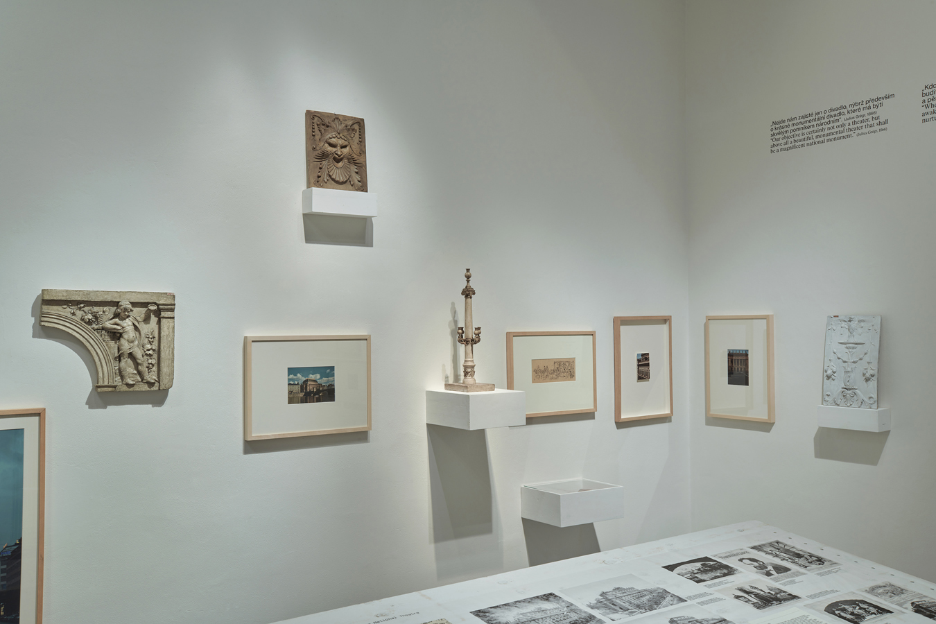 Mimo tyto materiály expozice nabídne i originální kresby zapůjčené Národní galerií Praha a sádrové odlitky stavebních prvků Národního divadla a Národního muzea, zapůjčené z Národního technického muzea. Za raritu této výstavy lze označit ohořelou část lustru, která se zachovala po požáru Národního divadla.