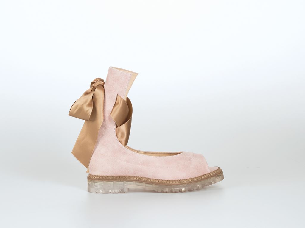 Hedvábně-saténová stuha, která připomíná zavázání na baletní obuvi, se objevuje ve všech třech designech jako hlavní detail a způsob uchycení boty.