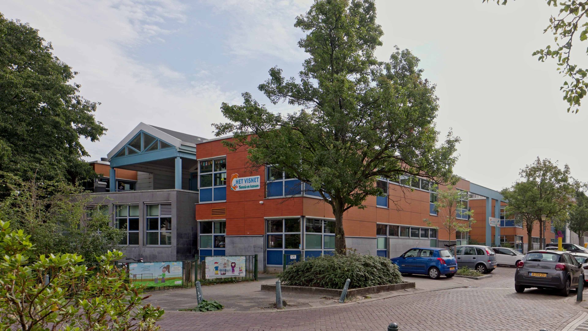 Základní škola Het Visnet (bývalá dvojškola Het Visnet a Springplank) v ulici Stationsstraat ve Vlaardingenu, řadové domy a bytový dům v ulici Prins Hendrikstraat ve Vlaardingenu, Helena Jiskrová, Zdeněk Zavřel, M. Baake, F. C. van den Hemel, Atelier Z Zavrel Architecten, projekt 1986-87, realizace 1988, rekonstrukce realizována bez účasti Heleny Jiskrové