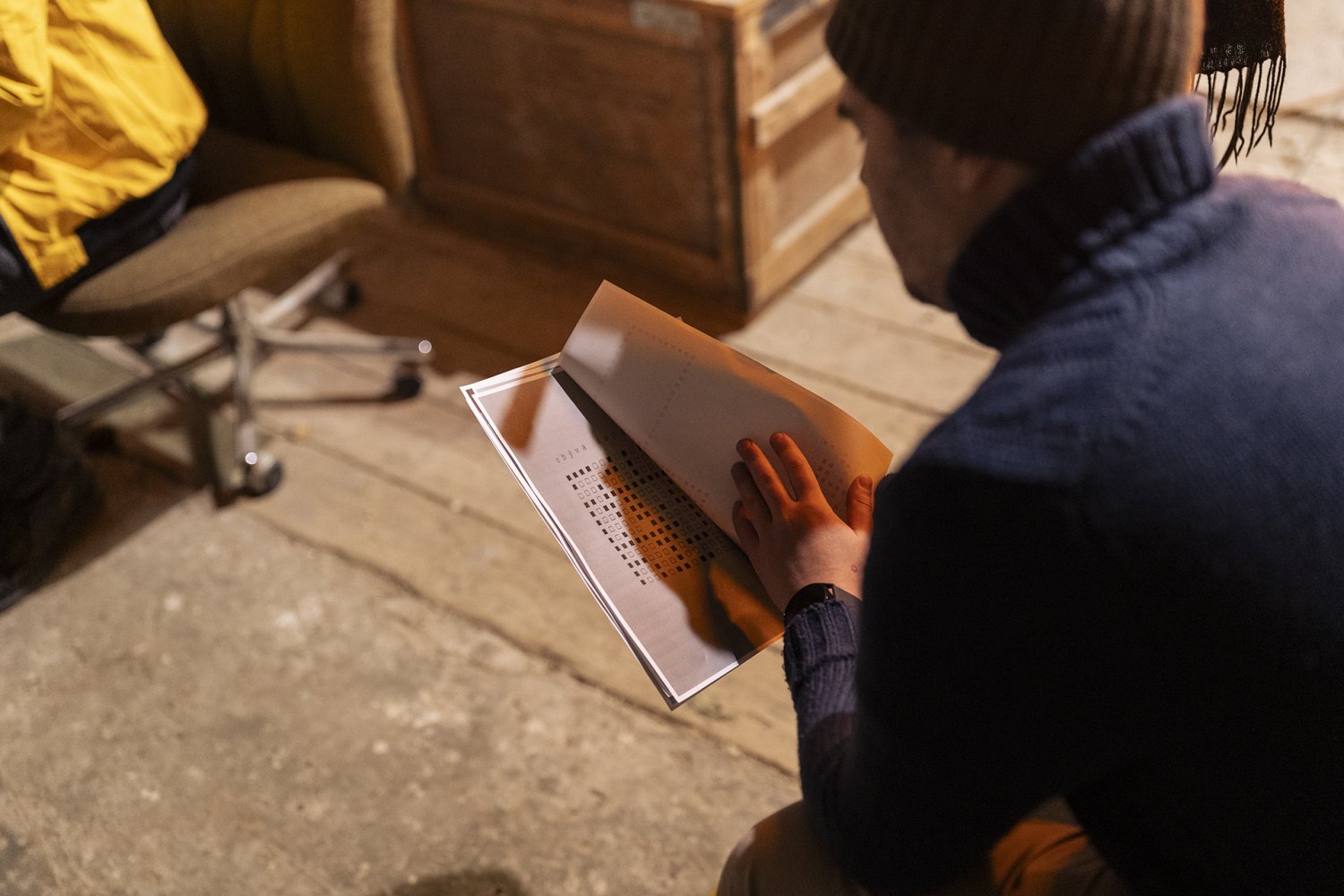 Přijďte se setkat s jeho přemýšlením – uslyšet básně bez veršů – dotknout se struktury, z níž je upředena rovnice o třech neznámých stejně jako láska!