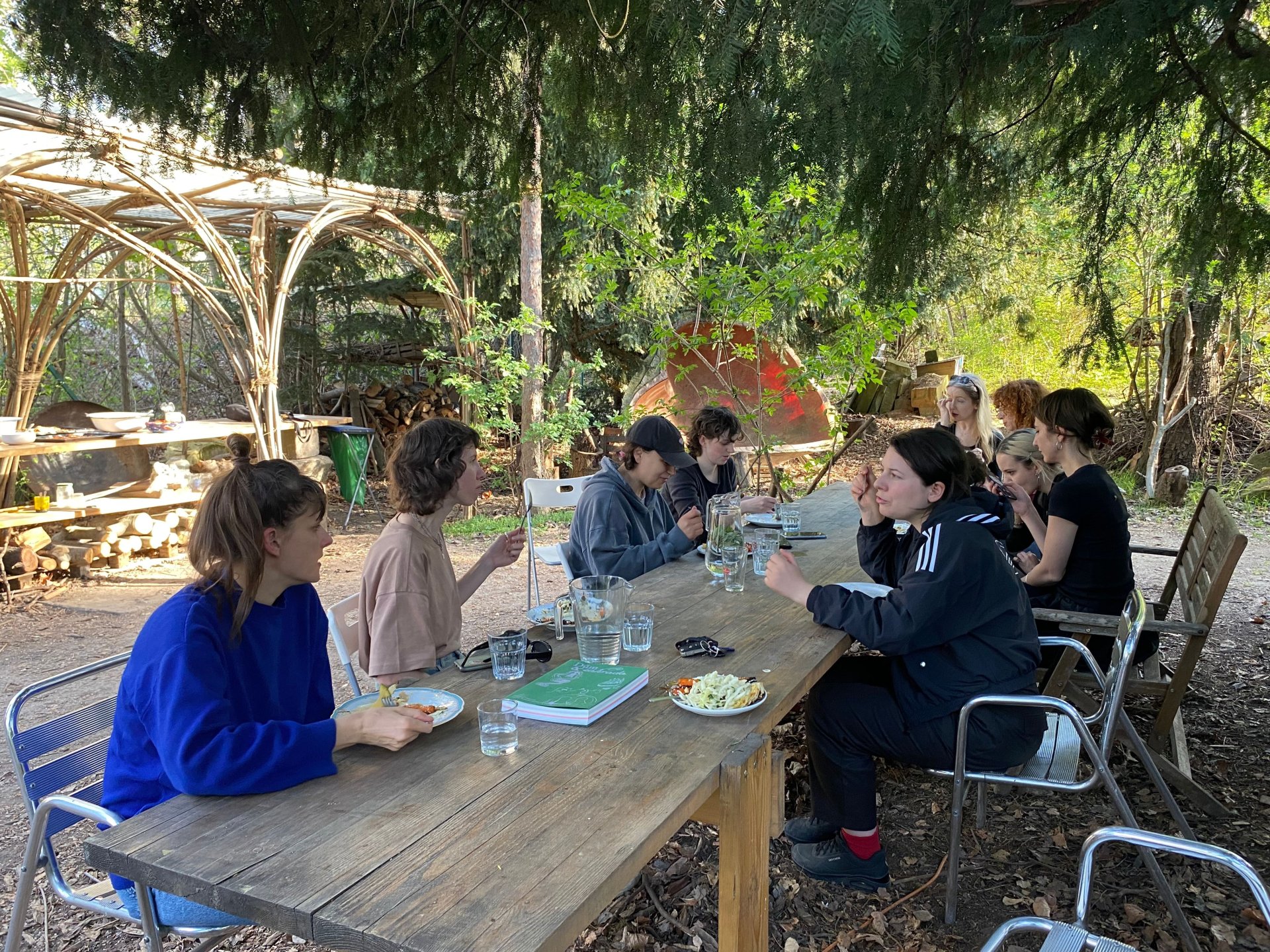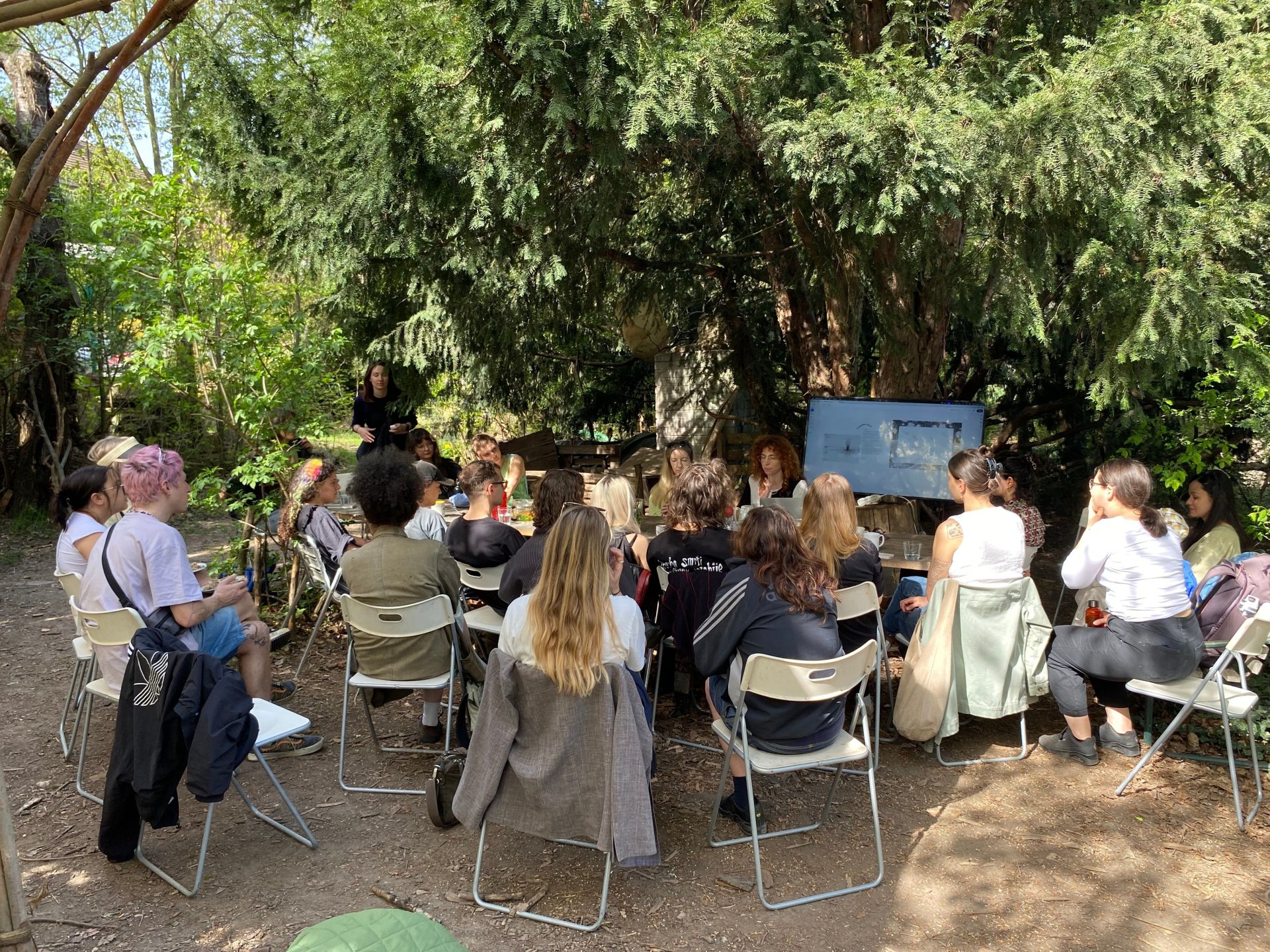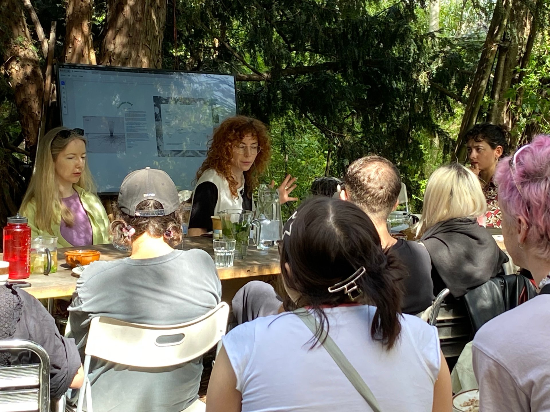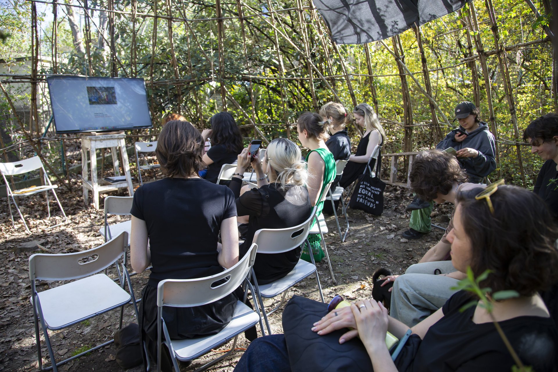 V této umělecké přednášce bude hostující umělkyně a výzkumnice Sophie Seita hovořit o své rozsáhlé praxi; zejména o jejích performancích, přednáškových vystoupeních, kolaborativních projektech a výzkumu zaměřeném na queer ekologii, více než lidskou spolupráci, zapomenuté feministické historie, experimentální pedagogiku a somatickou praxi. Na přednášce se představí minulé, současné i možné členky tajného spolku, který se věnuje zahradničení, drbům a lesbickému kamarádství; setkáme se zde také s kukuřičnými klasy jako výzvou k přehodnocení reprodukce a příbuzenství a k vnímání biologie jako tvárné; dotkneme se nebo budeme házet imaginární kameny a klást poetické, geofilosofické a geopolitické otázky o čase, zakořeněných dějinách a intimitě; a řeč bude také o kompostu jako materiálu a metafoře pro mezigenerační queer učení a mezidruhovou spolupráci - s ohledem na to, jak by tyto materiály, jazyky a postupy mohly změnit naše chápání ekologické gramotnosti, nového projektu, který umělkyně v současnosti rozvíjí s Youngsook Choi.