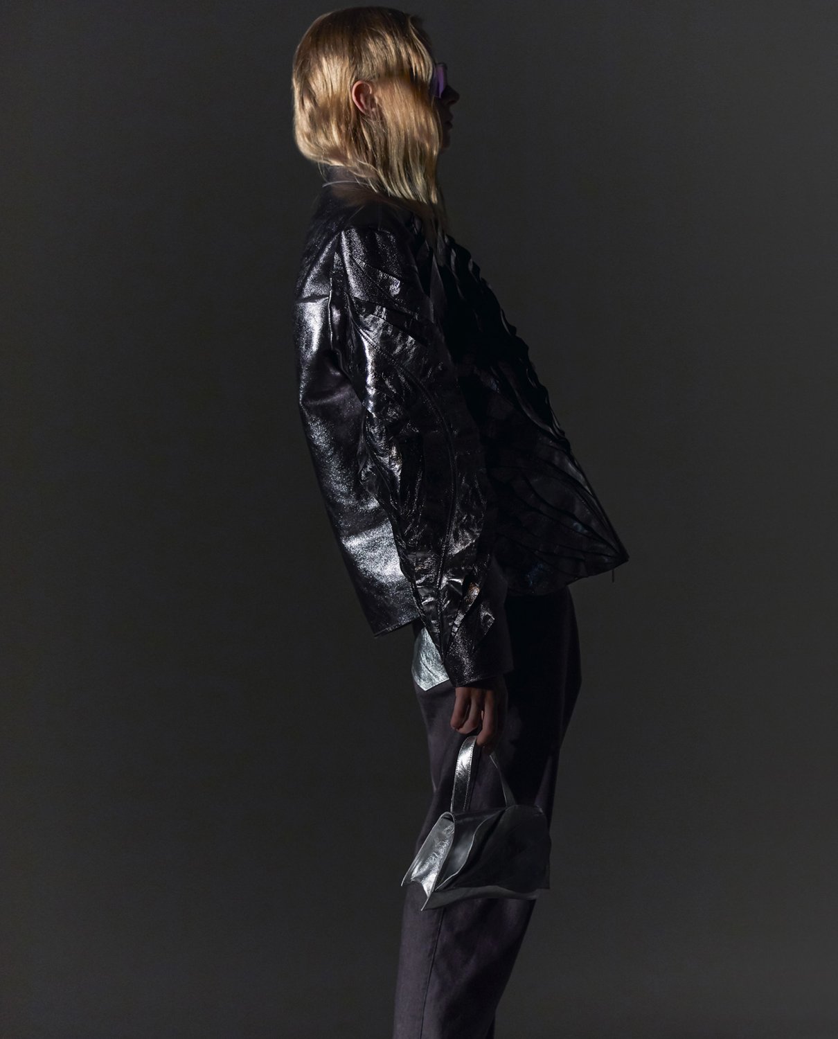Štěpán Mareš: Pánská kožená bunda, kalhoty a kabelka Bling bling boys v barvě Mode grau