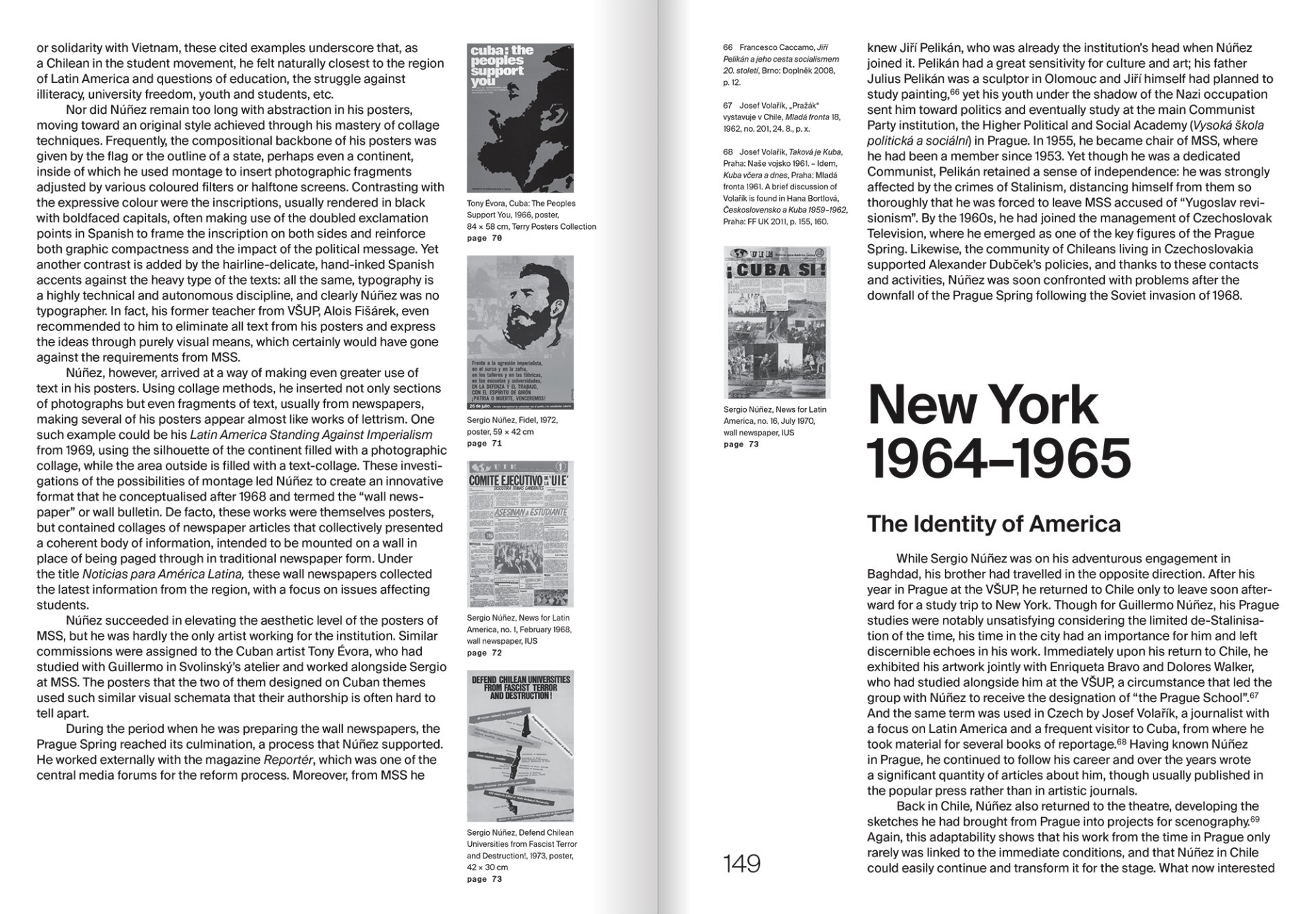 Chilští umělci Guillermo (1930–2024) a Sergio (1931–2002) Núñezové sdíleli jakožto bratři obdobné výchozí podmínky, ale Praha, kde na přelomu padesátých a šedesátých let studovali na Vysoké škole uměleckoprůmyslové, byla posledním místem, kde žili a pracovali společně. Od té doby měly jejich kariéry, odehrávající se na několika kontinentech, radikálně odlišný směr. Guillermo Núñez působil v New Yorku, odkud se vrátil do Chile, aby se v pozici ředitele Muzea současného umění podílel na kulturní politice Salvadora Allendeho. Po jeho smrti byl vězněn, musel uprchnout do Evropy a v její západní i východní části jako disident svojí tvorbou svědčil o zločinech Pinochetova vojenského režimu. Sergio Núñez z Prahy odjel do porevolučního republikánského Iráku, aby vyučoval na bagdádské Tahrir College. Po dalším převratu v Iráku se vrátil do Prahy, usadil se zde a pracoval v Mezinárodním svazu studentstva, pro který navrhoval plakáty. Zatímco Guillermo Núñez platí za zásadního představitele chilského moderního umění, Sergio Núñez je zapomenutý. Kniha využívá metodologii globálních dějin umění k porovnání kariér obou bratrů. Vychází česko-anglicky za podpory Ministerstva kultury ČR v rámci projektu NAKI III / Místa tvořivosti* / Uměleckoprůmyslové vzdělávání – konstrukce identit, záchrana minulosti a design budoucnosti. Grafika František Polák. Kniha doprovází stejnojmennou výstavu v Galerii UM na UMPRUM (24. 10. 2025–21. 12. 2025).