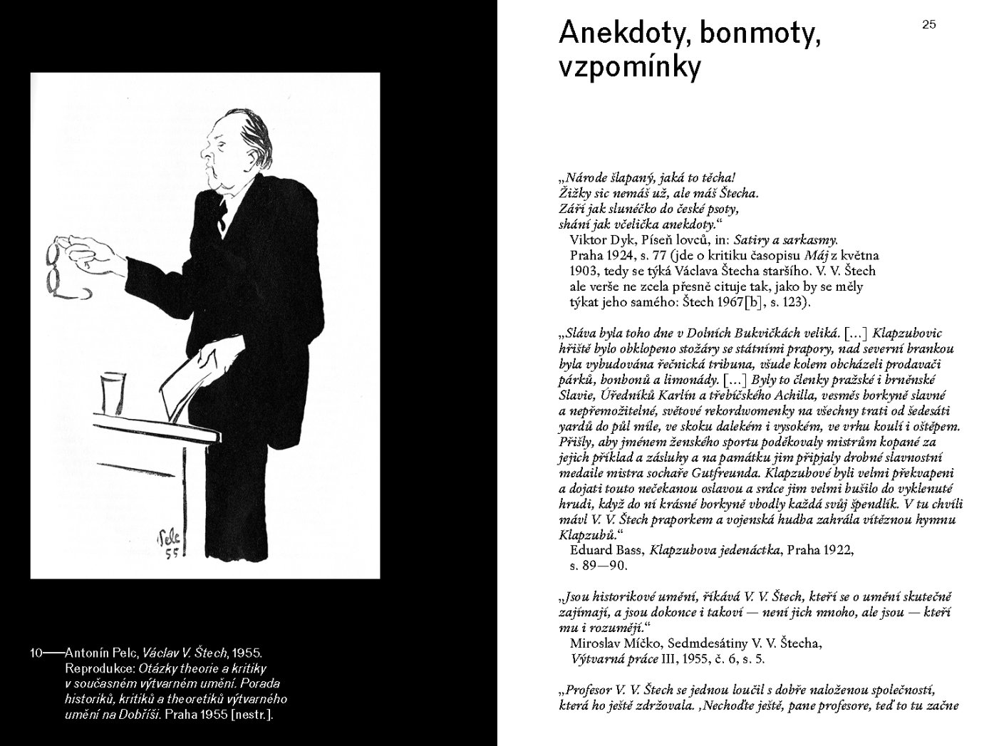 Soubor studií zařazených do pečlivě připravené kolektivní monografie, která jako celek přináší množství nových, mimořádně podnětných a objasňujících pohledů na život, dílo a působení v novější době nikoli zapomenutého jako spíše ne zcela doceněného V. V. Štecha, představuje podle mého názoru zásadní, neopominutelné, faktograficky i metodologicky bezpečné východisko k dalšímu kritickému pochopení Štechova mnohostranného odkazu i jeho přínosu českým dějinám a teorii umění.