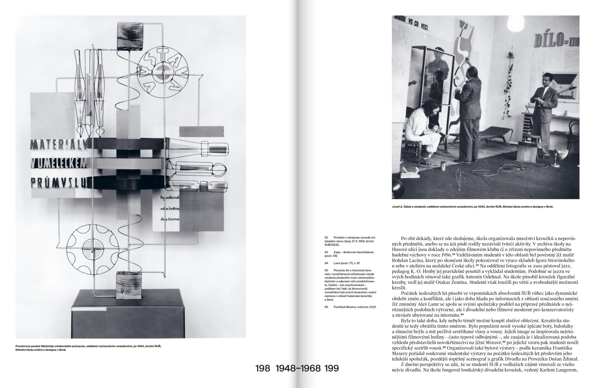 Jak se v Brně rodilo moderní umění a design, jaké byly metody uměleckoprůmyslového vzdělávání? Publikace zachycuje stoletý příběh jedné středoevropské školy, v níž se setkávaly lokální folklorní tradice s experimentální uměleckou avantgardou, poslušnost vůči politickému establishmentu s odvážným volnomyšlenkářstvím a tradiční řemeslná zručnost s novými médii. Představuje výsledek týmového výzkumu a přináší řadu původních textových studií i dosud neznámý obrazový materiál. Vychází česko-anglicky za podpory Ministerstva kultury ČR v rámci projektu NAKI III / Místa tvořivosti* / Uměleckoprůmyslové vzdělávání – konstrukce identit, záchrana minulosti a design budoucnosti. Grafika Jiří Mocek. Kniha doprovází stejnojmennou výstavu** v Domě umění města Brna (22. 10. 2025–8. 3. 2026).