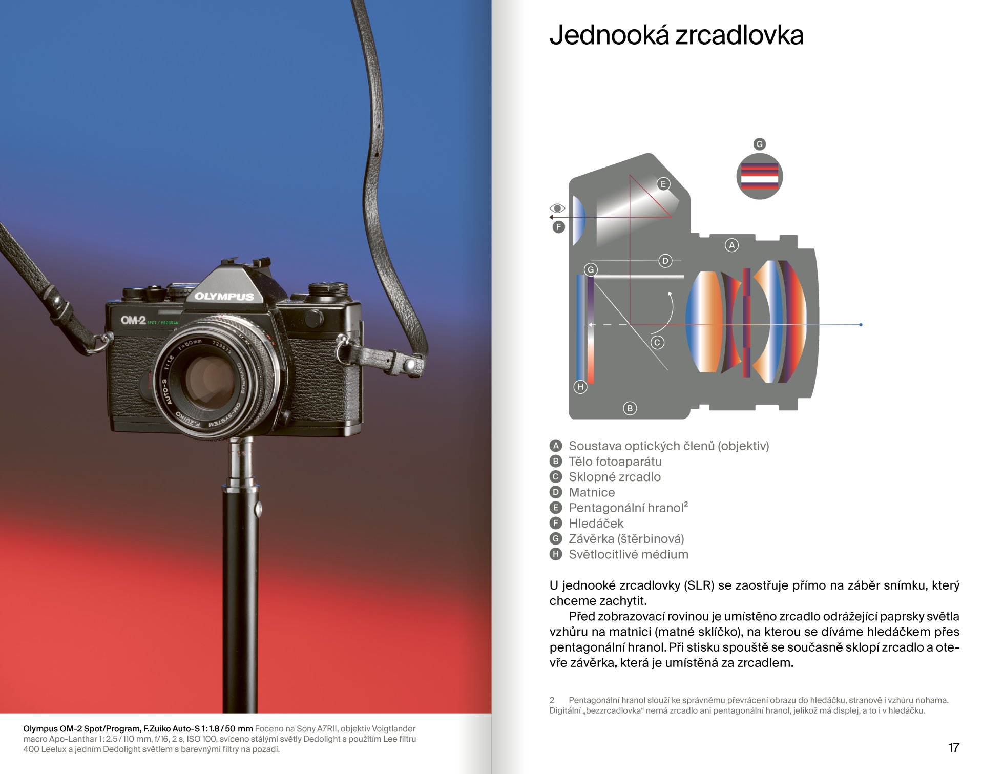 Dvě století od vzniku první dochované fotografie zažívá toto médium nebývalý rozmach. Fotografie se stala nedílnou součástí mezilidské komunikace a hlavním nástrojem pro tvorbu obrazů je dnes mobilní telefon. Algoritmy výpočetní fotografie posouvají uživatele digitálních zařízení do vztahu blízkého konceptu Aparát–Operátor, jak jej popsal Vilém Flusser. Tato příručka principu fotografického média si klade za cíl přiblížit čtenáři, co se odehrává na pozadí algoritmů v „black boxu“ fotografického aparátu. Východiskem pro pochopení média jsou poznatky fotografie 20. století. Autor se v knize často odkazuje na práci Ansela Adamse a ukazuje, s jakými problémy při zachycení světla se musejí vyrovnávat i současné technologie. Zaměřuje se na vznik fotografie na základě fyzikálních zákonů, jež platí univerzálně. Cílem není čtenáře zahltit obsáhlými texty plnými odborných termínů, ale naopak srozumitelně a za pomoci jednoduchých ilustrací objasnit základní principy. Publikace vychází z autorových poznámek k výkladu technologie fotografie. Místy jsou pasáže rozvinuty do kratšího textu, většina však zůstává ve své stručnosti ve formě poznámek k přednášce nebo výkladu. Knížka obsahuje text renomovaného umělce a pedagoga FAMU Hynka Alta „Bez názvu (Kočka, aparát a filtr)“. Fotografie Václav Kopecký, ilustrace Kristýna Marková, grafika Barbora Tomová.