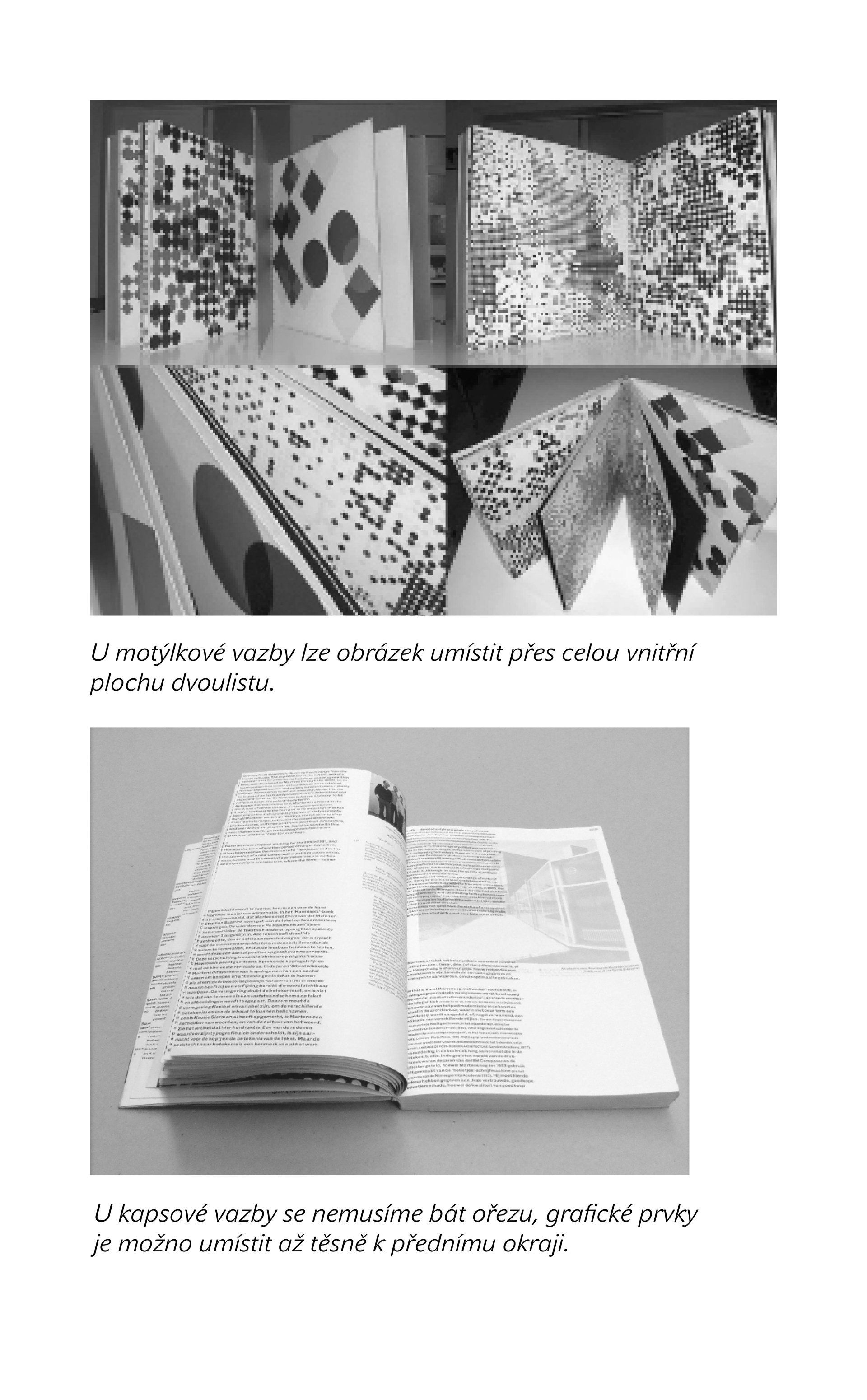 Knížka je určena zejména grafikům, návrhářům knižních adjustací. Měla by je osmělit k použití konstrukce při výtvarném zpracování knižních vazeb. Autor představuje konstrukci z trochu jiného úhlu pohledu, a to jako předmět kreativní úpravy prostřednictvím jednotlivých konstrukčních elementů. Elementy knižní vazby navazují na předchozí titul Stavíme knižní vazbu, v němž byly jednotlivé konstrukční prvky definovány. Nyní jsou ukázány v oborovém, výtvarném i technologickém kontextu. Autor čerpá inspiraci v pedagogických metodách Bauhausu, které jsou založeny na výstavbě výtvarného díla z elementárních výtvarných prvků. Konstrukční prvky knižní vazby jsou použity jako díly stavebnice. Výtvarné hodnoty předmětu je dosaženo vzájemnou kombinací prvků do funkčních a estetických celků. Technické ilustrace, grafika a knižní vazba Jan Hybner. Tisk obálky René Řebec.