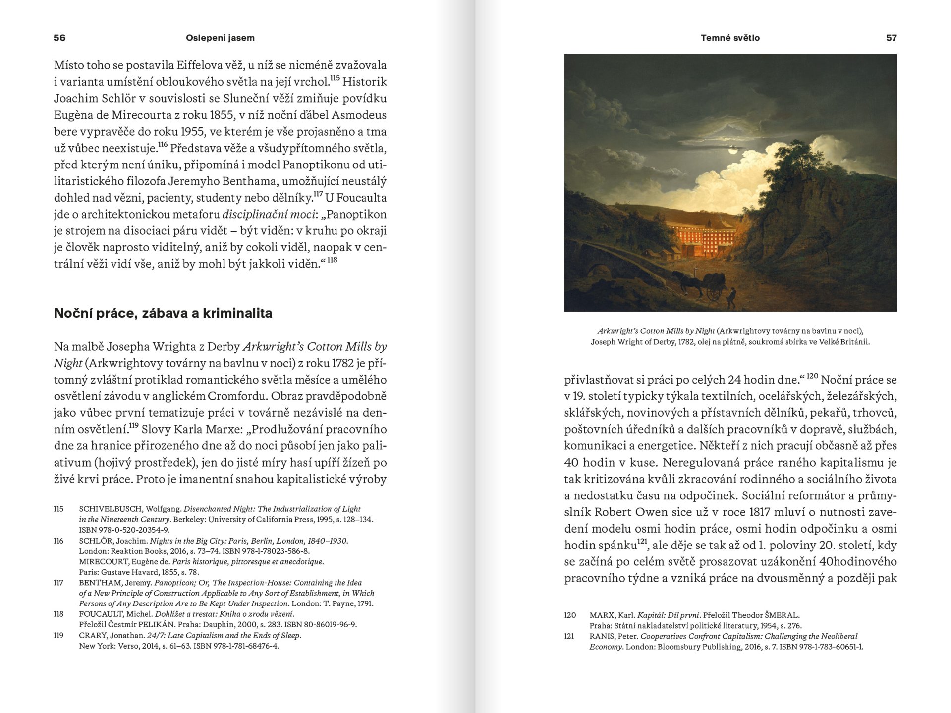 Je neustálé osvětlení stírající rozdíly mezi dnem a nocí snem modernity, anebo noční můrou? Když si posvítíme do těch nejtemnějších koutů, znamená to skutečně i to, že lépe vidíme a všemu rozumíme? Nebo nás všudypřítomný jas může i oslepit? První část této knihy vymezuje a shrnuje dosavadní výzkum tématu kolonizace noci a sleduje její důležité projevy od starověku do současnosti. Druhá část už je specifičtěji orientovaná na problematiku osvětlování nočních oblastí vesmírnými zrcadly. Vůbec poprvé komplexně mapuje historii těchto plánů od jejich počátku ve 20. letech 20. století až do současnosti a zasazuje je do sociálního, politického, kulturního a environmentálního kontextu. Grafika Jan Novák, Nikola Ivanov. Vychází česko-anglicky.