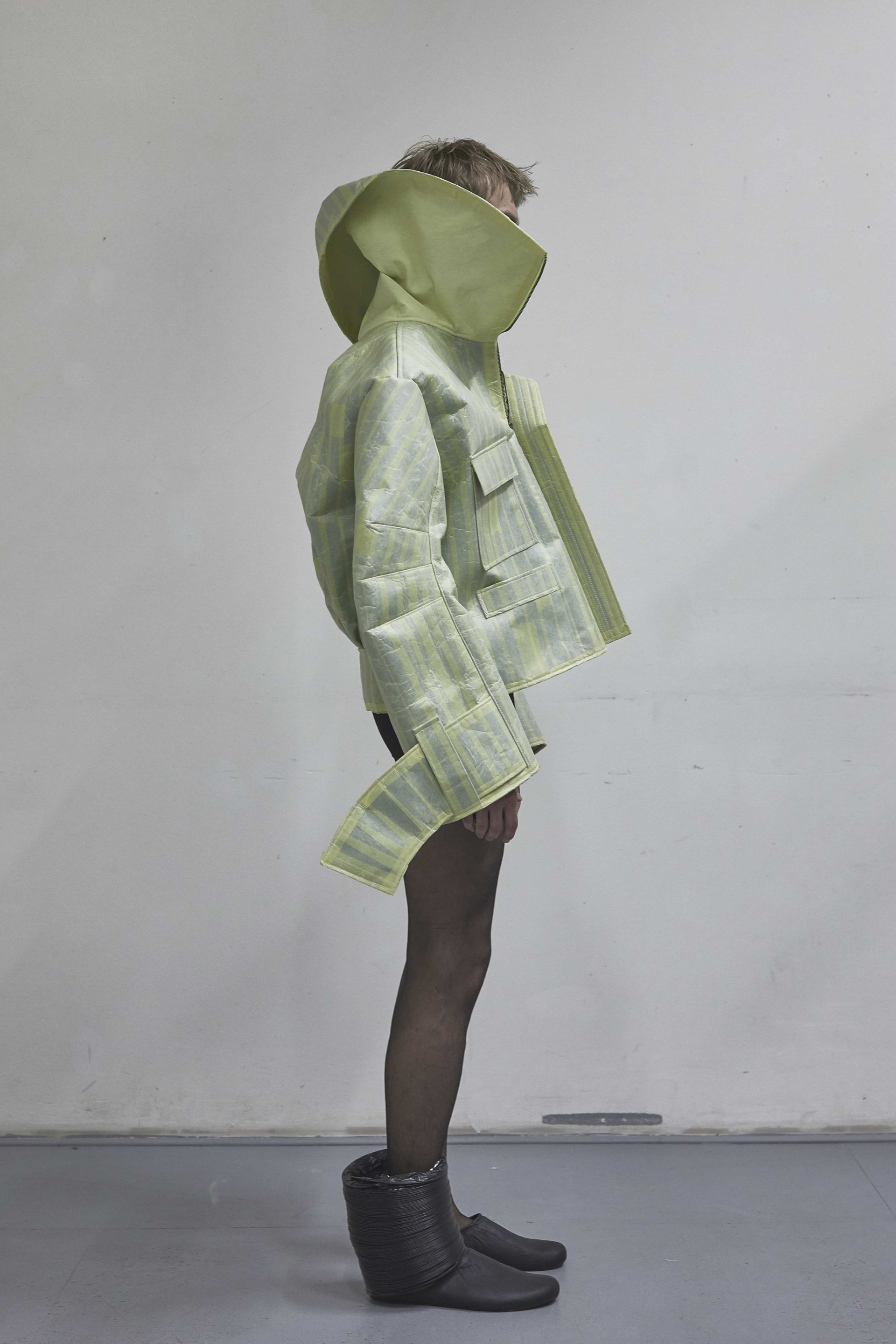 A Šimon Žák, student Ateliéru designu oděvu a obuvi se svou diplomovou módní kolekcí Out of Focus.