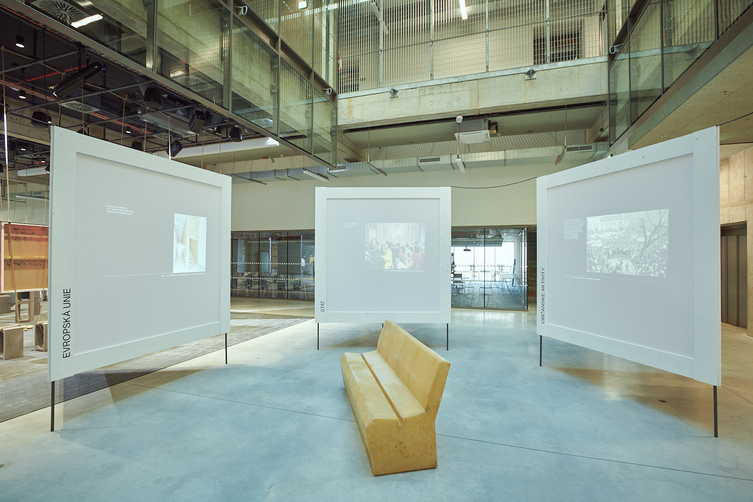 „Tři dekády porevolučního vývoje nejsou ale jen obdobím mocenského vyvažování a proplétání veřejného a soukromého zájmu. Diverzifikuje se sám veřejný sektor. Veřejnost se oficiálně stává svébytnou politickou silou. Architektura tak už nereprezentuje jen politiku státu, ale i dalších hráčů s různými cíli a prioritami. A politika je v současnosti spíše prostorem pro vyjednávání“, vysvětluje významný faktor změn kurátor výstavy Cyril Říha.