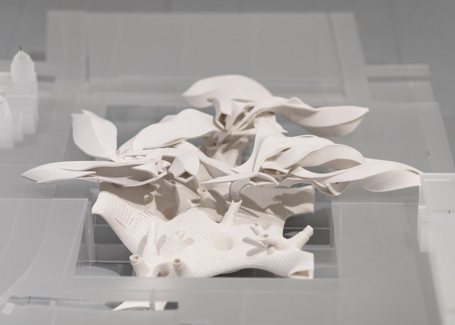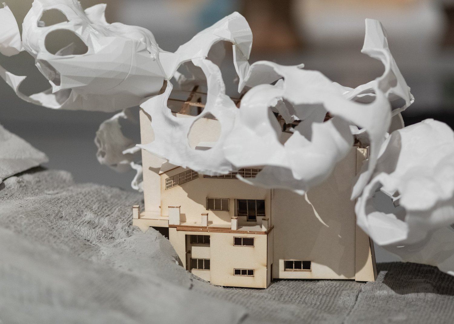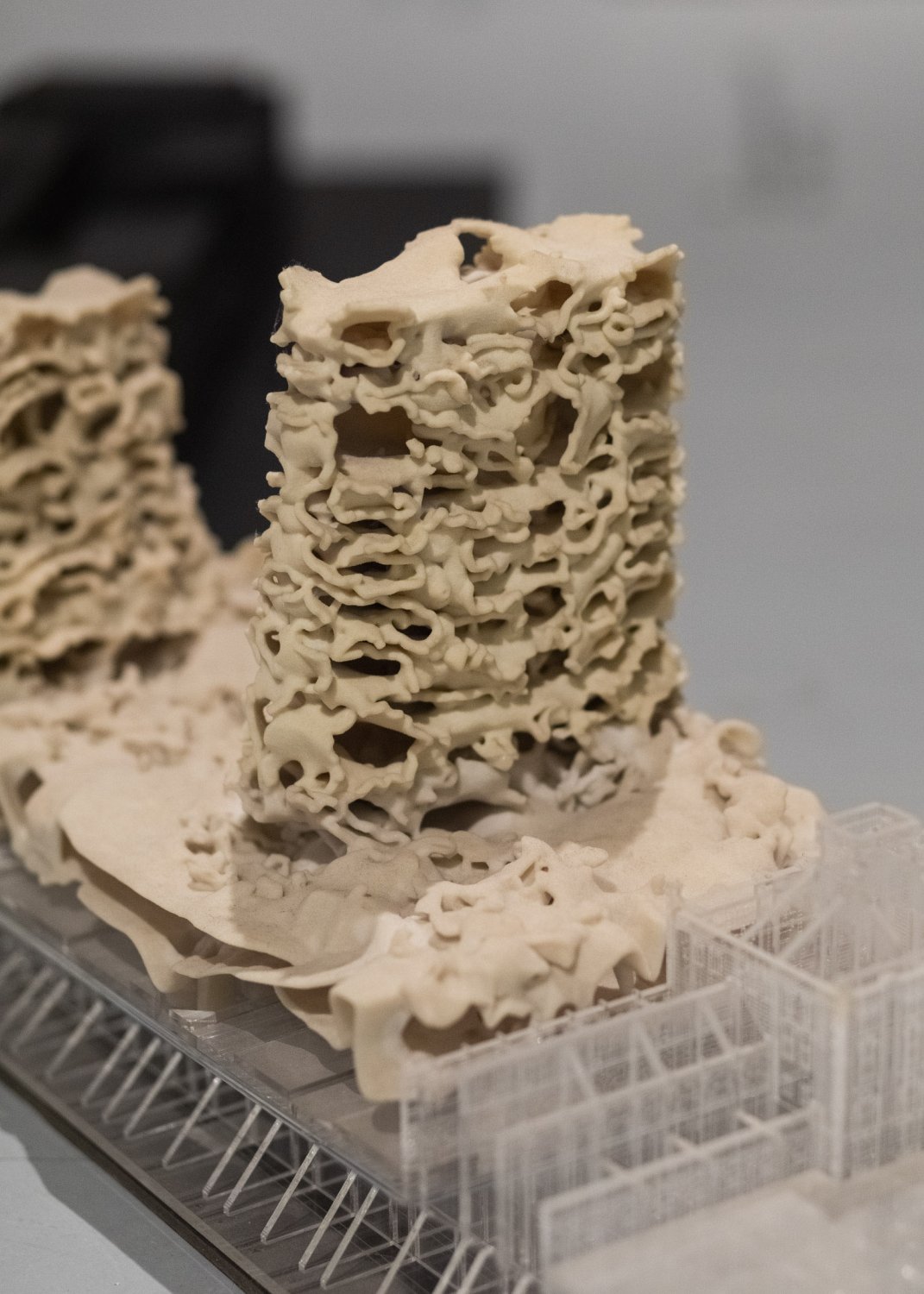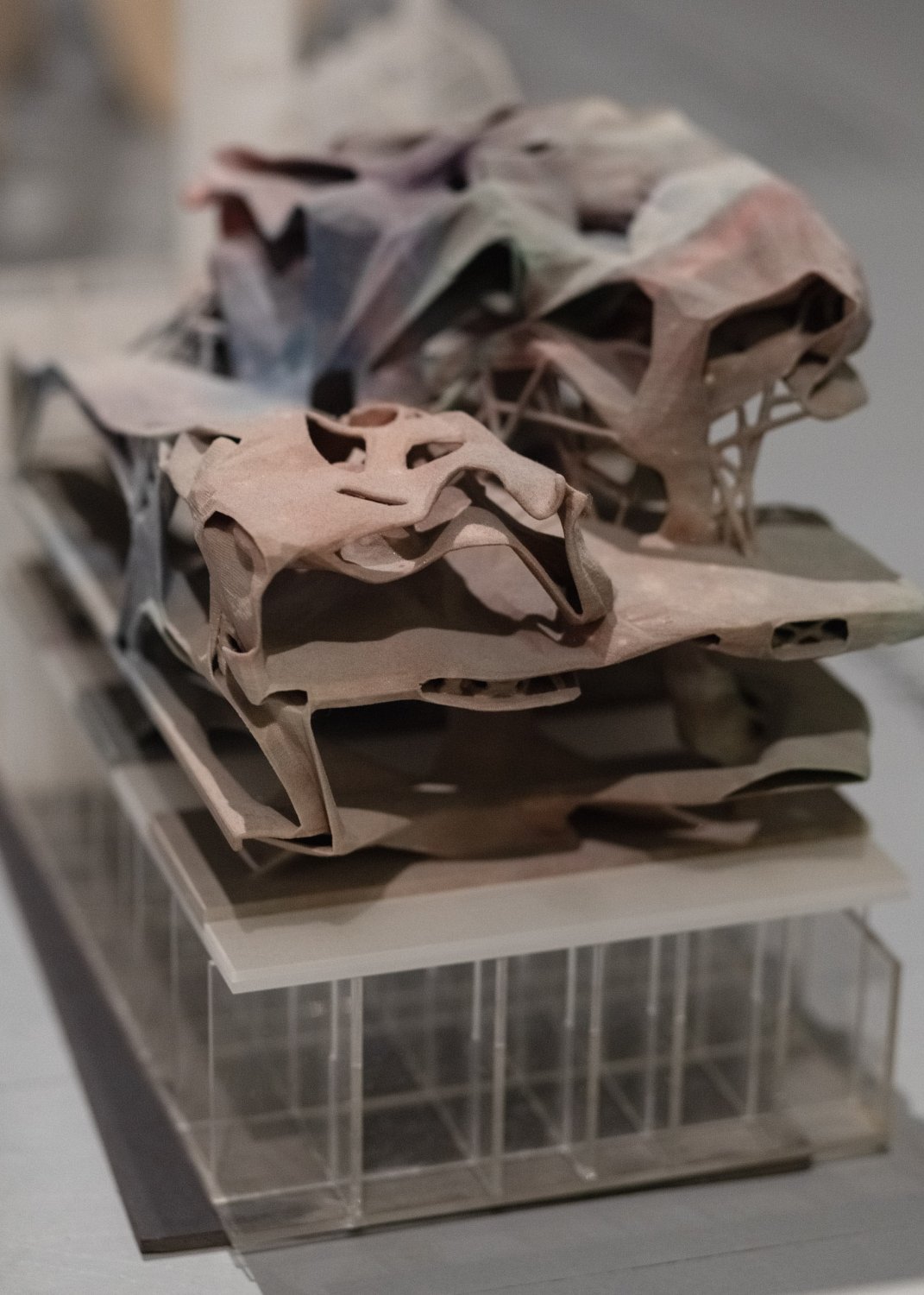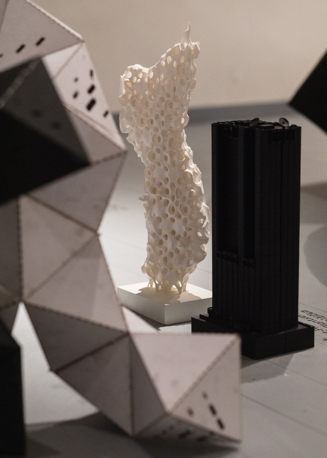 The exhibition at the UM Gallery can be divided into four areas that the studio has been working on since 2011: new nature, materiality, robotic production, and data space. The archipelago consists of a representative collection of successful projects and their authors without authoritative hierarchy, typological categorization, and incorporation into a timeline. Nearly three dozen architectural models created by students, Ph.D. students, as well as former and current teachers of the studio - Imrich Vaško, and assistants Shota Tsikoliya and Martin Gsandtner - are presented to the public. The thematic groups - islands - represent remarkable and often award-winning projects, which have been acclaimed at domestic as well as international exhibitions at Milano Design Week, Ars Electronica in Linz, Austria, Kunsthalle in Bratislava, and the Czech Cultural Centre and Brot-Fabrick in Vienna. On display are not only models but also real outcomes of research projects, such as the technologically experimental chairs created in collaboration with the Slovak company ITB and ASL.