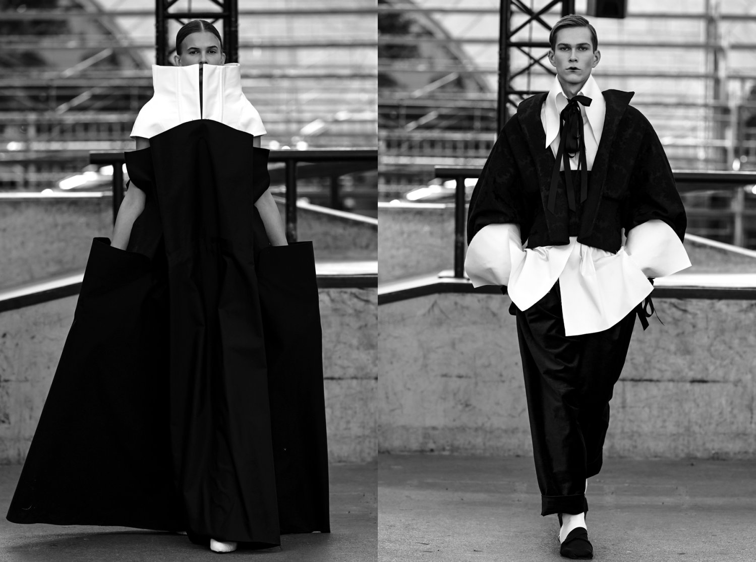 The collection is inspired by French caricature, precision, satire and social criticism from the Baroque Classical period. The main inspiration comes from the works of the French playwright Molière, his characters and the characters that interconnect the whole work of his. The clothing reflects their certain attributes and allusions of these overcultivated noblewomen from 17th century in France.