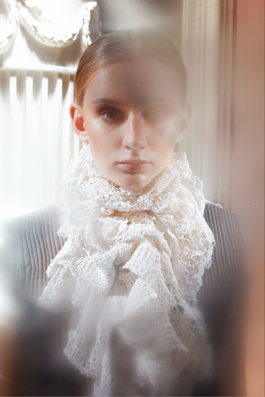 Liběna Rochová and her students worked on the theme inspired by France for two semesters. This is not the only reason why they can present a complete, thoughtfully, and precisely crafted collection. Part of the project was carried out in collaboration with Marie Claire magazine, which mapped the project and covered it on its website. Vogue CS subsequently took on the photographic documentation of part of the collection, shooting the collection in Paris for its September 2022 issue. It also caught the attention of the Studio of Photography II, which photographed it under the supervision of Štěpánka Stein. A selection of these works will also be included in the exhibition