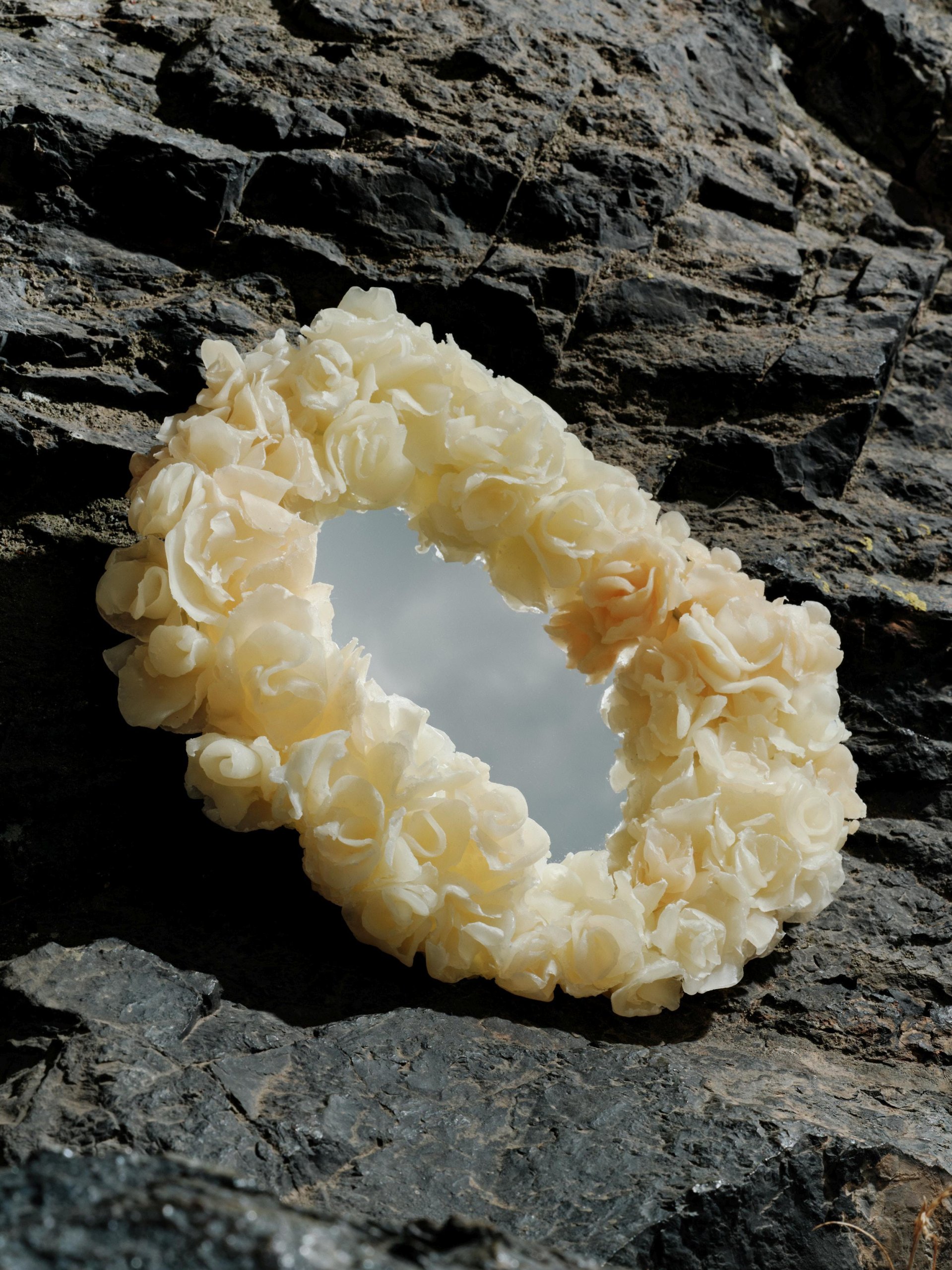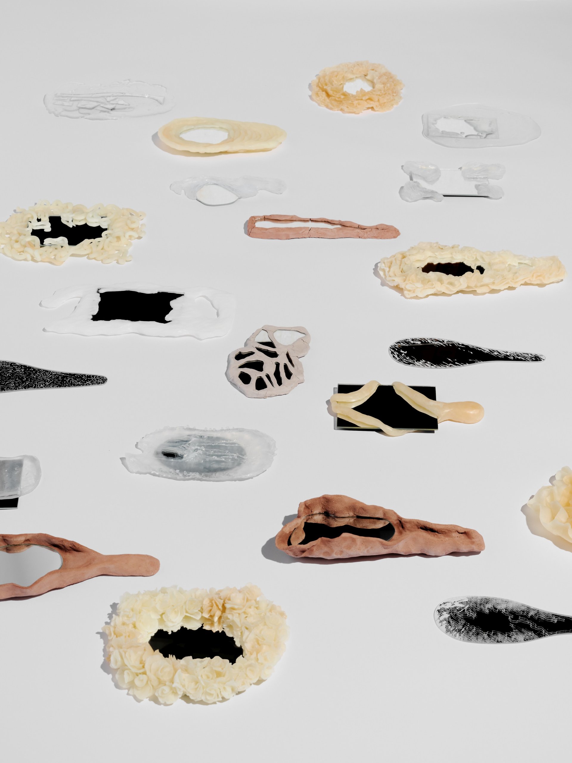 As a means of expressing her message, Sofia chose a series of mirrors. They serve as a metaphor for function in design. Their aesthetic treatment — small engravings or sculpturally crafted frames — reflects the author’s perspective on her own dilemma. The creation of materials plays a significant role as well — wax, soap, and unfired clay, which are temporary and allow for a freer, more expressive form of creation.
