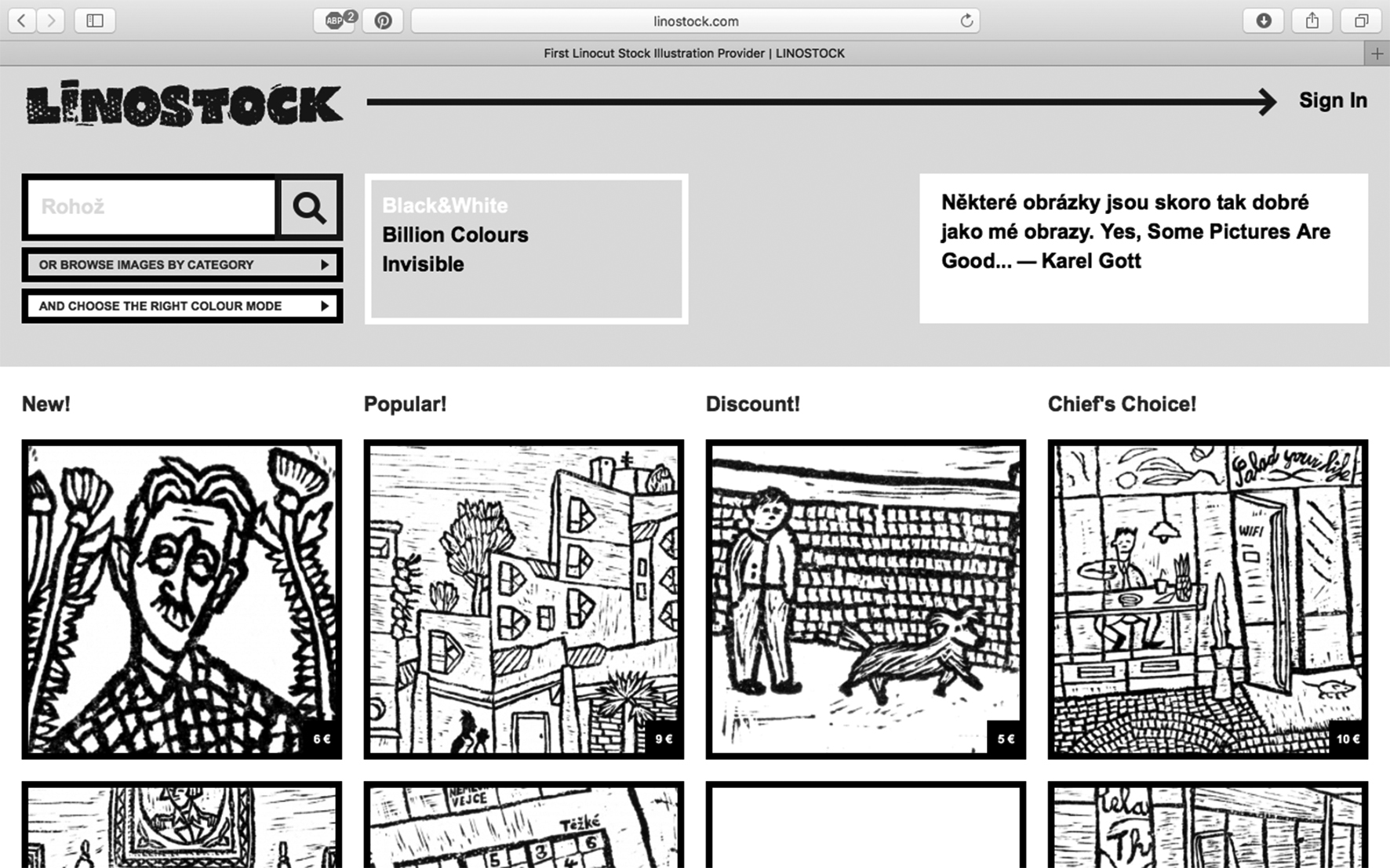 Linostock je první světová linorytová banka. Je určena pravidelným uživatelům fotobank stejně jako těm, kteří se fotobankám vyhýbají nebo dosud nevěděli, že fotobanky existují.