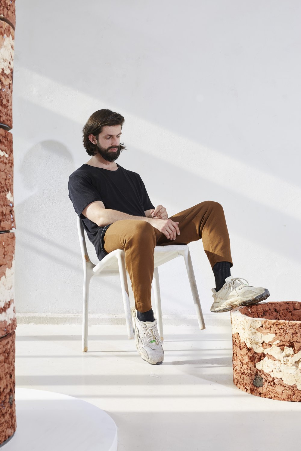 Výsledkom môjho výskumu je takmer 3-metrový monument inšpirovaný geologickými vrtmi; zhotovený z ílov pomocou dusania do formy.