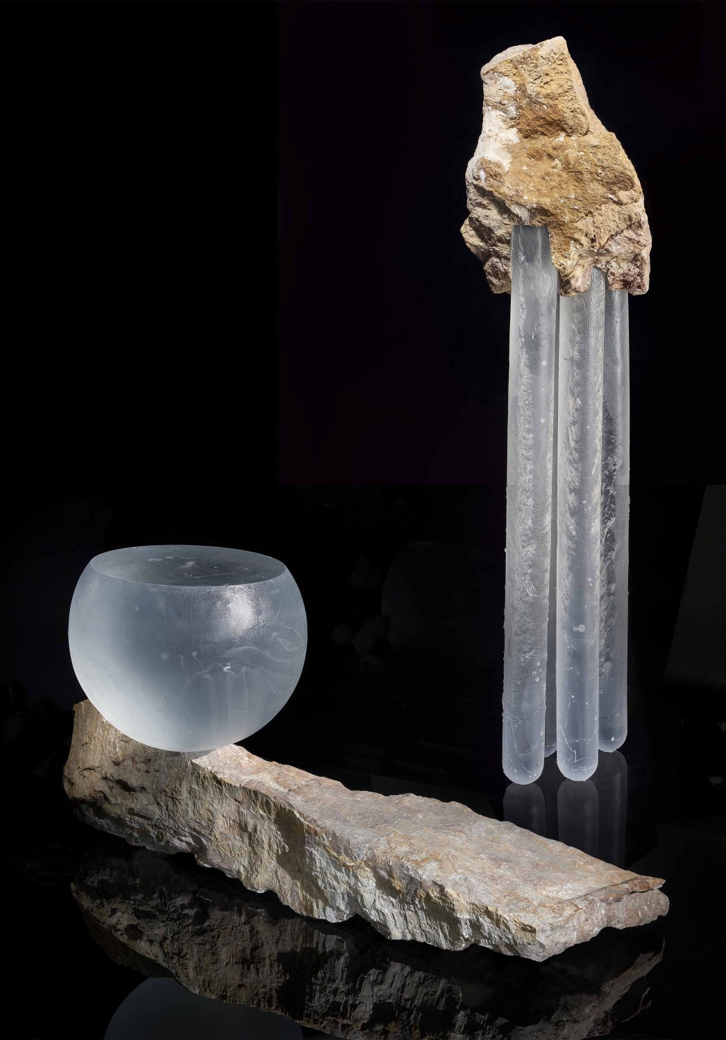 Diplomová práce se zabývá pojem monumentality, tím jak ji lidé vnímají a také aplikací těchto prvků do skulpturálního designu. Dva objekty tvoří kombinace taveného křišťálového skla a červeného mramoru. Tyto konstelace mají za cíl vzbudit v divákovi emoce spojené s pocity ohrožení a nerovnováhy. Zároveň je pomocí těchto objektů zkoumána hranice funkčnosti. Vzhledem k použití hrubého lomového kamene, dochází k jistému momentu unikátnosti.