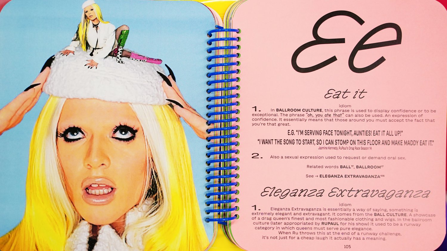 The TV show RuPaul’s Drag Race has become a global phenomenon over the last couple of years. As a result, drag and queer slang, colloquialisms, and phrases have contaminated popular culture and have become mainstream in some contexts. My diploma project attempts to trace the past, present and future of the drag and queer phenomenon through words and images in the form of an experimental queer glossary. The intent was to create an educational tool and, at the same time, to celebrate drag as an art form and its excessiveness and queerness.