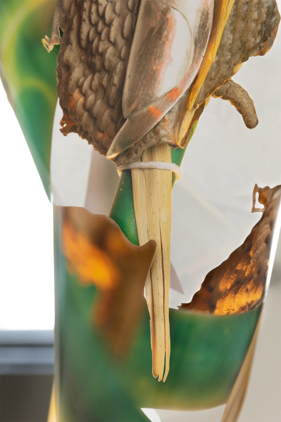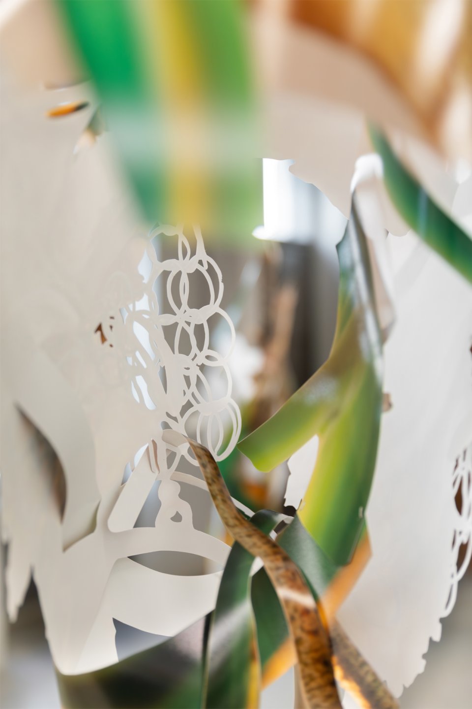 Fotografické koláže v prostoru jsou reakcí na radikální proudy spojené s mužskou identitou, které v současné době sílí nejen ve virtuálním prostoru. Snaží se pomocí jemnosti, křehkosti a empatie vymezovat vůči představám tzv. manosféry o ideální podobě maskulinity a vůči nenávisti, která je s touto skupinou lidí často spojena. Práce je na pomezí mezi šperkem, fotografií a sochou, jejichž rozšířená pole se snaží zkoumat. Kombinace právě těchto médií je praxe, které se ve své volné tvorbě věnuji již několik let.