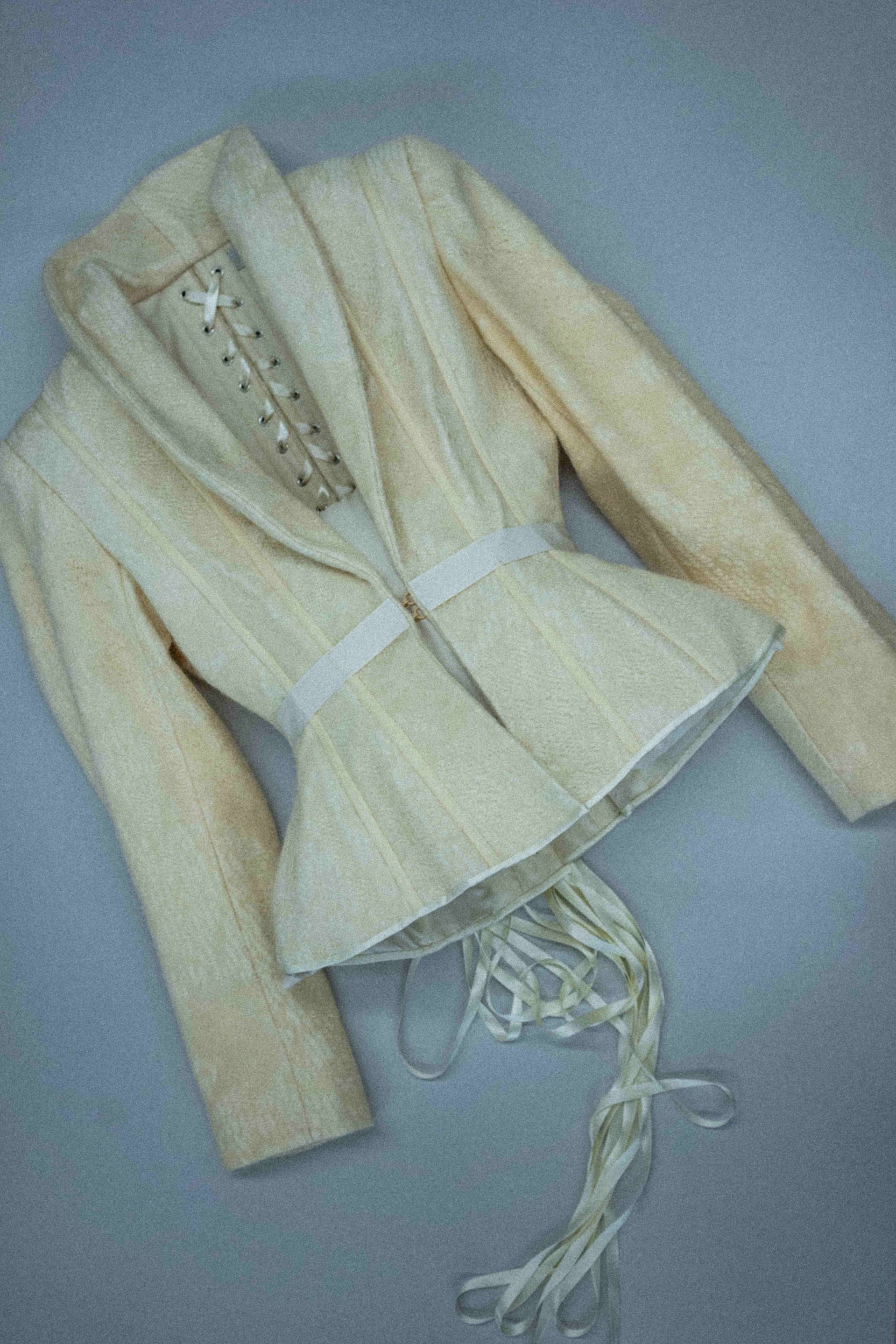 Diplomová práce se zaměřuje na oděv jako historický artefakt, který odráží spojení kultury, estetiky a osobní identity. K inspiraci vytvářené kolekce slouží kniha The Dress Diary od Kate Strasdin, která zachycuje deník Anne Sykes, jež dokumentuje textilní vzorky a oděvy z 19. století. Projekt se zaměřuje na analýzu vrstevnaté struktury historických oděvů, jejich materiálové skladby, siluet formovaných spodním prádlem a technik, které formovaly ženské tělo i vizuální jazyk doby. Praktická část kolekce interpretuje historické principy v současném kontextu s využitím tradičních i experimentálních přístupů – zejména pletenin (ve spolupráci s firmou KNIT-TEX CZ s.r.o. a Mikulášem Bruknerem), krejčovských technik a tvorby korzetů. Cílem je prohloubit porozumění historickému oděvu a jeho významu pro tvorbu současné módní kolekce.