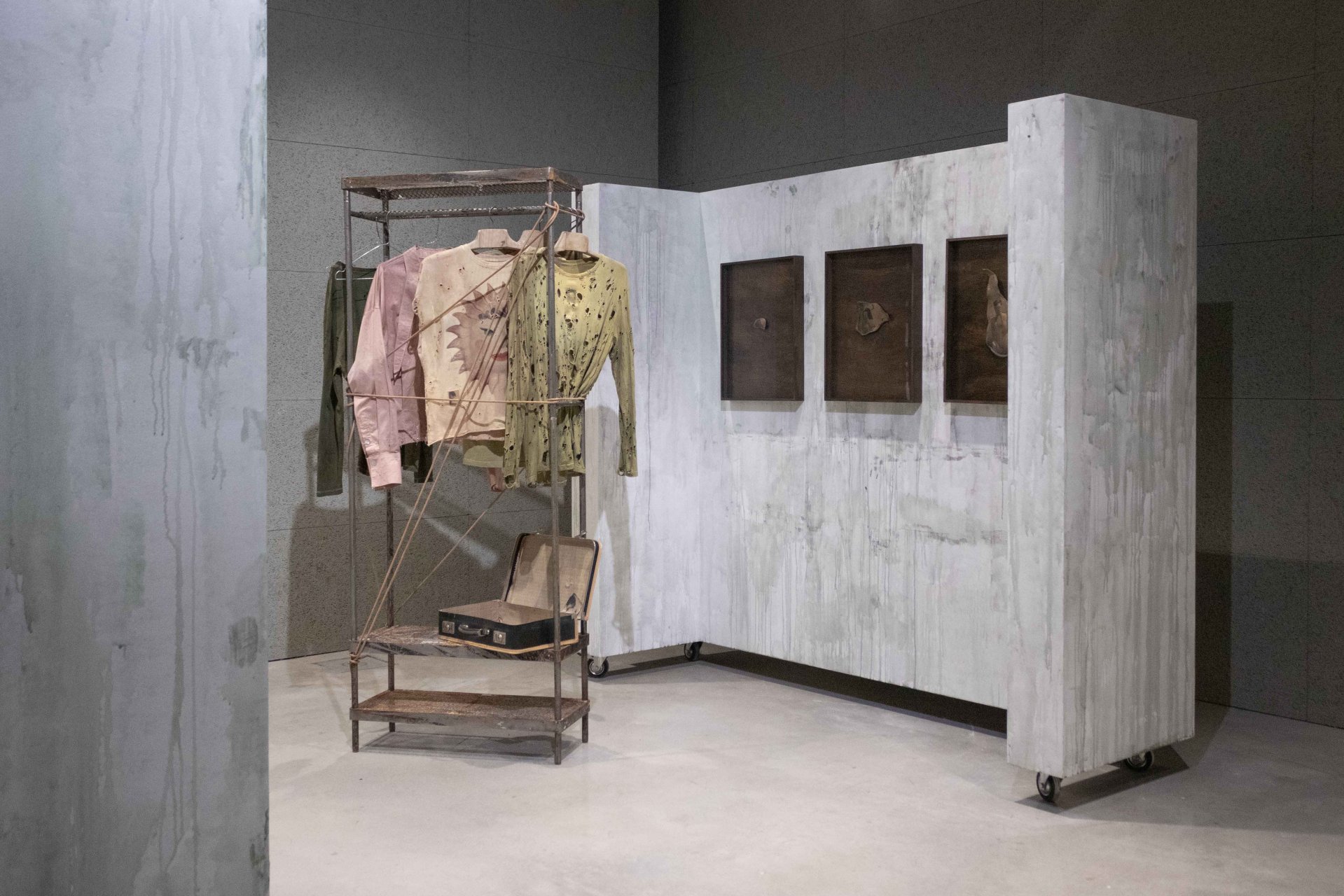 Instalace Fracture of the Sun reflektuje autorovu osobní zkušenost z queer dospíváním a zpětným procesováním traumatických zážitků. Dílo vypráví o queer hanbě, samotě a eskapismu. Práce prezentuje fragmenty osobního archivu, které autor zpracovává s využitím ruční práce s různorodými materiály. Pracuje s tiskem fotografií na textil a kůži, ruční výšivkou a nášivkou, které v objektových a kostýmových prvcích evokují proces ztráty, opotřebení a časovosti. Kovová konstrukce symbolizující šatník je metaforou pro skrývání a uchovávání vzpomínek.