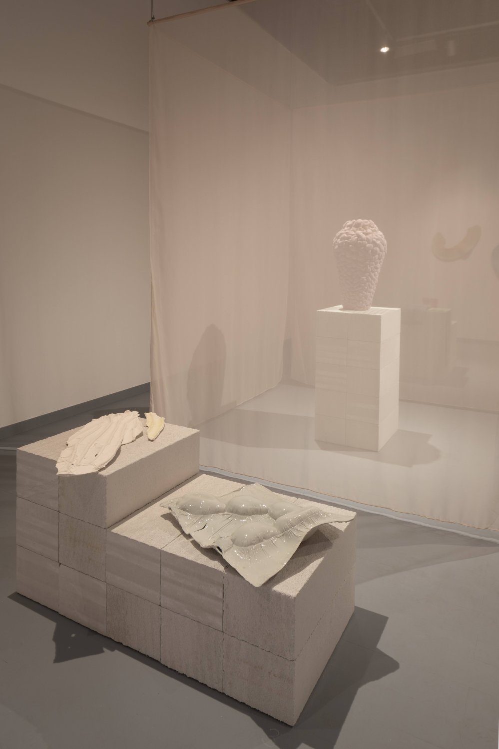 Karolína Kučerová, ač je studentkou Ateliéru keramiky a porcelánu, využívá ve své tvorbě celou škálu materiálů. Její tvorba se pohybuje na pomezí sochařství a při práci dosahuje jemnosti i u pevných materiálů. Skleněné a keramické objekty, které vytváří, vyvolávají svým tvarováním, barevností a strukturou dojem hebkosti a měkkosti. Autorka do každého svého díla vkládá vlastní duševní rozpoložení a osobnost.
