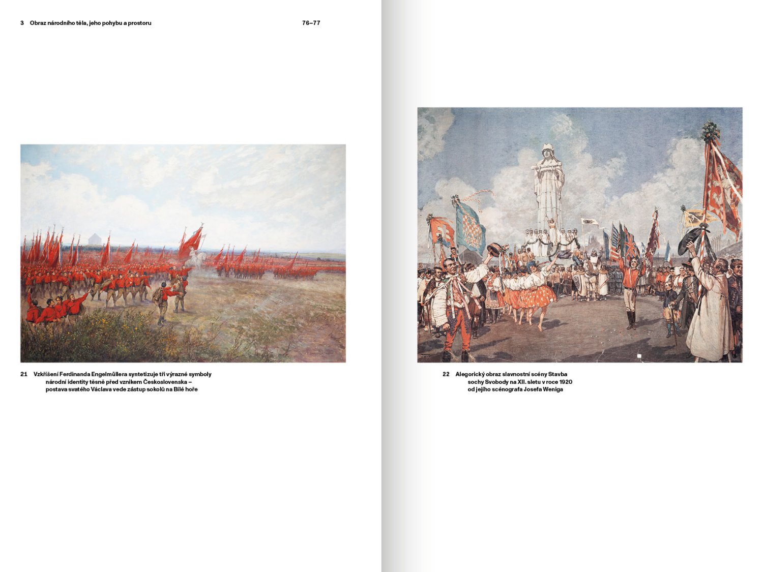 Publikace vychází z dizertační práce realizované pod vedením doc. Lady Hubatové-Vackové a obhájené na Katedře teorie a dějin umění UMPRUM v roce 2019. Ústředním tématem projektu je proměna vizuálních motivů a symbolů masových tělovýchovných performancí od šedesátých let 19. století do roku 1989. Struktura textu vychází z předpokladu, že vizuální motivy a symboly migrují a že se jejich význam mění na základě konkrétního společenského a kulturního kontextu. Proměna vizuální reprezentace tělesné kultury je analyzována prostřednictvím konkrétních vizuálních a performativních znaků v reprezentaci Sokola, dělnických tělovýchovných jednot, federace proletářské tělovýchovy a československých celostátních spartakiád. Grafika Tereza Hejmová.