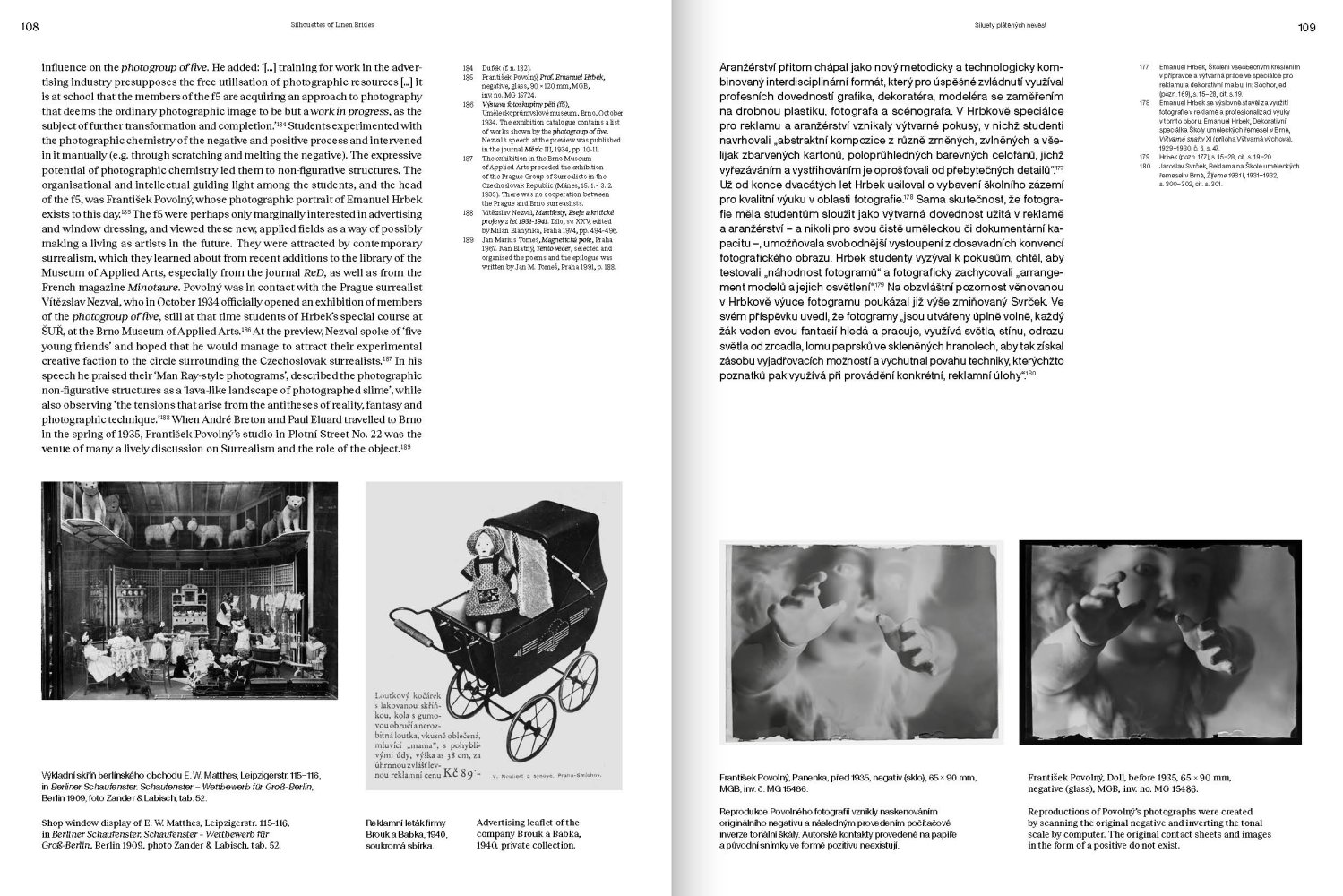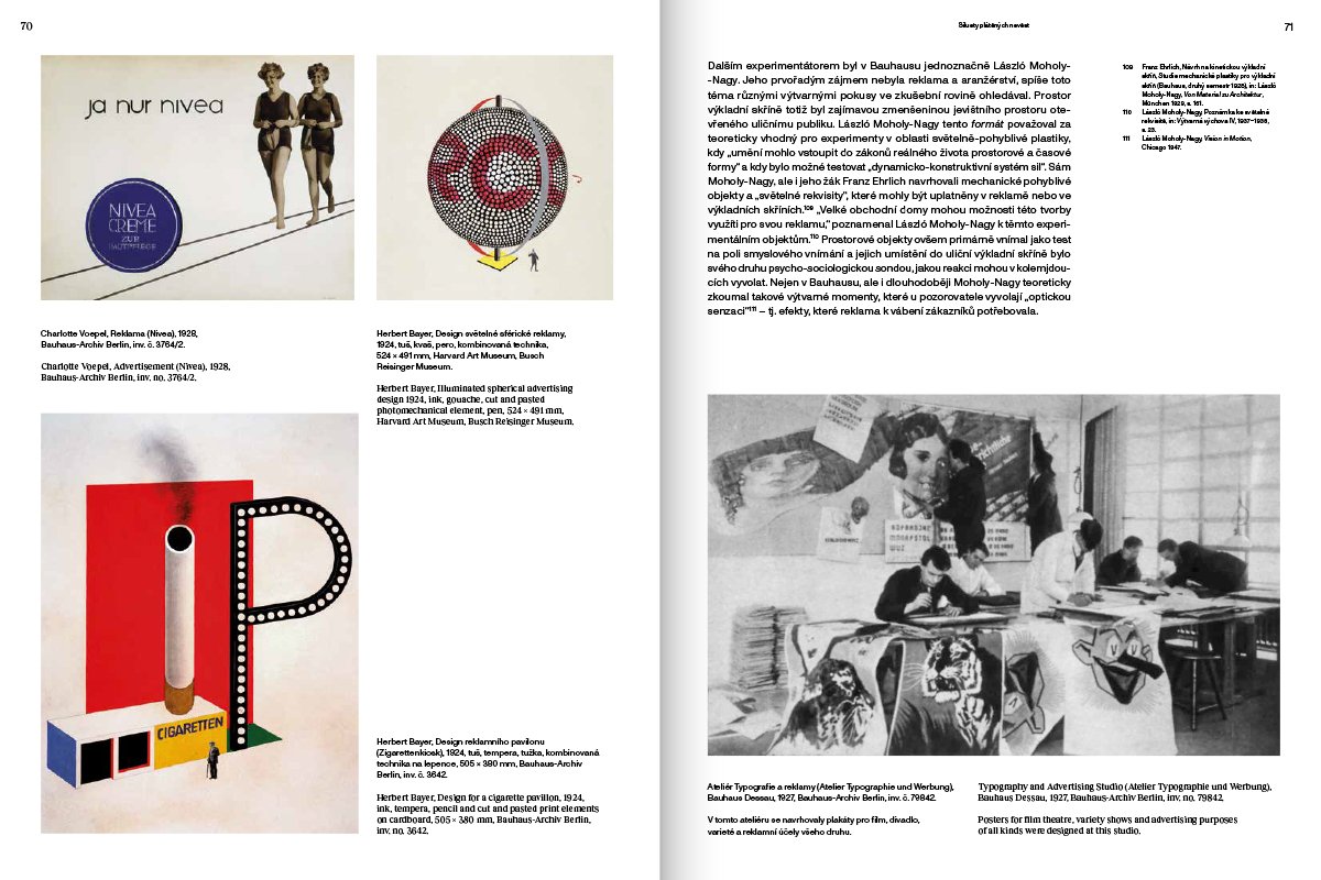 Teoretik Karel Teige ve dvacátých letech minulého století použil slovní metaforu „divadlo ulice“ pro pulzující, dynamický vizuálně-akustický děj, který se tou dobou odehrával v centrech větších měst. Měl tím na mysli nejen všudypřítomný dopravní lomoz a ruch, ale i novou urbánní ikonografii, kterou tvořily vývěsní štíty, portály obchodů, osvětlené výkladní skříně, fasádní velkoplošná reklama a blikající neony. Výkladní skříně s rafinovaně aranžovaným zbožím neušly pozornosti surrealistů, kteří obdivovali jejich absurdní a vynalézavé sestavy, světelné iluminace byly blízké experimentům konstruktivistů, reklamy a nápisy vycházely z moderní typografie a osvědčených postupů, jak získat pozornost kolemjdoucích a „flanérů“. Pro pochopení meziválečného modernismu představuje ono pomíjivé „divadlo ulice“ klíčové téma, přesto se tato oblast nestala nikterak rozšířeným námětem pro odborné studie. Tato kniha se snaží najít průsečík mezi obchodem a uměním, mezi „nízkým“ a „vysokým“, mezi popkulturou, komerční propagací a nezávislou tvorbou. Publikace obsahuje pět odborných studií, které reklamní praktiky prezentují v kontextu výtvarného umění, architektury, fotografie, filmu a nových technologií spjatých s elektrifikací měst. Místně a časově se studie soustředí na rámec Československa vymezený lety 1918–1938 s výběrovými odkazy na evropské relace. Textovou část doplňuje bohatá obrazová dokumentace vycházející z rešerší dobových periodik, archivů, veřejných i soukromých sbírek. Jako určitý anachronický prvek je do knižního bloku vsazen – na průsvitném papíře – soubor dvaceti kreseb Evy Koťátkové, který rozvíjí zkoumané téma na hranici mezi pragmatismem obchodu a „křečovitou krásou“ surrealismu. Grafika Adéla Svobodová. Kniha vychází s podporou Grantové agentury ČR v česko-anglické jazykové mutaci.