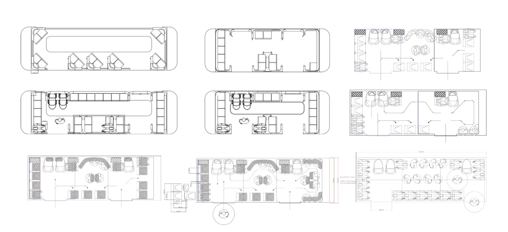 - autonomní dopravní prostředek jeho interiér (lidské měřítko vs autonomní MHD)