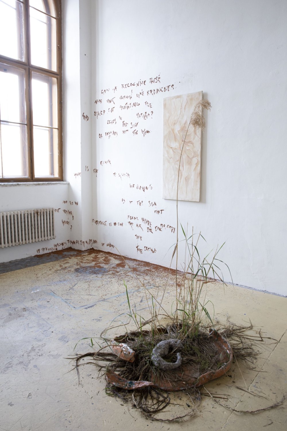 Výstava tématizuje reflexi vazby na prostředí, odkud jsme vzešli, kam jsme emigrovali, nebo kde prožíváme třeba jen semestr studia. Aktivní zacházení s vědomím vnitrozemské existence umožňuje chápat - pochopit zdroje vlastní tvorby zcela novou perspektivou. Absence moře a brakické vody na našem území zase nabádá k vyhledávání vlastních inspiračních pramenů skrze které, byť i na okamžik, popíráme gravitaci. Tato nepřítomnost v přítomnosti nabírá eskapistických tendencí do vlastních realit, o kterých podáváme výpověď napříč pěti ateliéry. Vodítkem k interpretaci jsou přidružená podtémata, která zaštiťují formální a obsahové podobnosti jednotlivých děl. Ty pak v kurátorském výběru podávají zprávu o návratu ke zdrojům vlastního poznání, uchopují hmotu a prostor, jenž nás obklopuje a tvoří pevný obal pro základní pohyb a interakci s prostředím, vymezují a ve stejnou chvíli umožňují (prostor) vymezit se z předepsaných hranic, narativními způsoby formují prostředí a v neposlední řadě přinášejí nové možnosti úniku z předdefinovaného území. Vnitřní popis událostí zde popírá doposud vnímanou realitu a prostírá svébytné umělecké přístupy. Odlišné formální prostředky nás nerozdělují, ale naopak posilují mnohovrstevnatou výpověď o životě mezi pevninami.