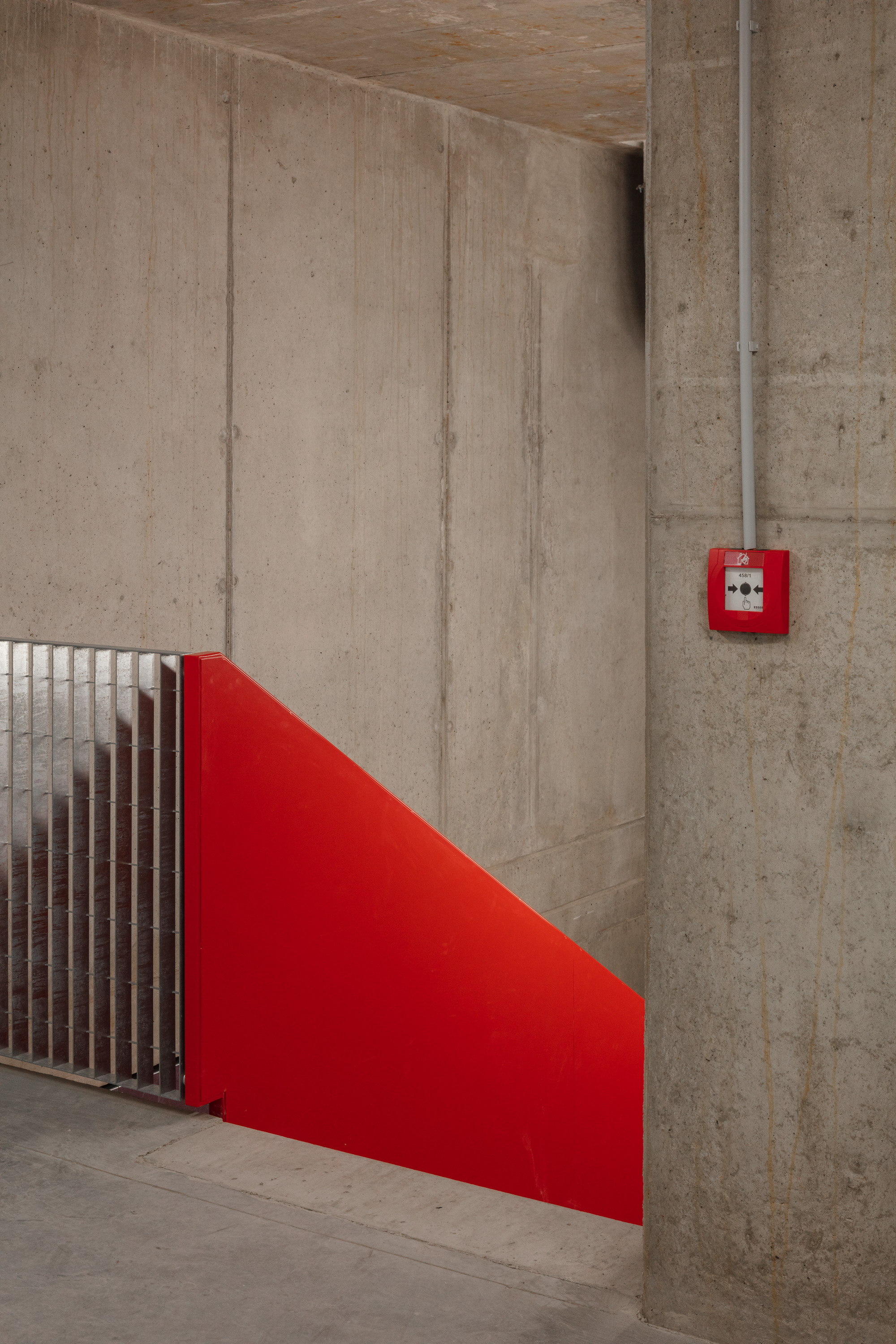 Prostorovou dominantou stavby je zastřešená dvorana, která kromě prezentačních účelů nabízí i platformu pro realizaci velkých projektů. Technologické provozy jsou soustředěny do bočních křídel, lehké provozy jsou situovány do středu dispozice. V suterénu jsou umístěny materiálové dílny, jejichž provoz je závislý na těžkých strojích. Podzemní podlaží také poskytují rozsáhlá skladovací zázemí pro jednotlivé ateliéry. Organizace všech prostor umožňuje vstup přirozeného světla, vizuální propojení centrálních polotransparentních provozů. Budova je završena terasou, na niž by se vměstnalo všech 500 studentů a 170 zaměstnanců školy.