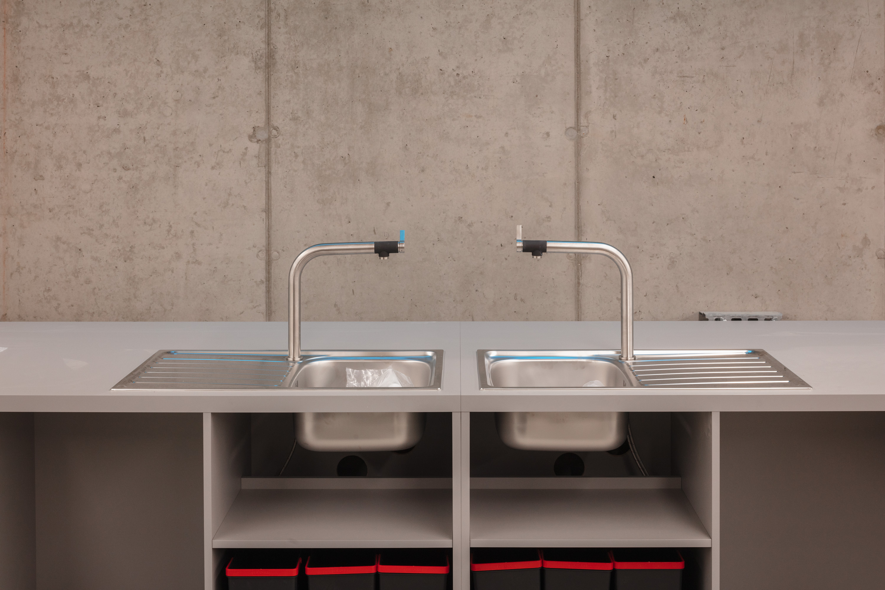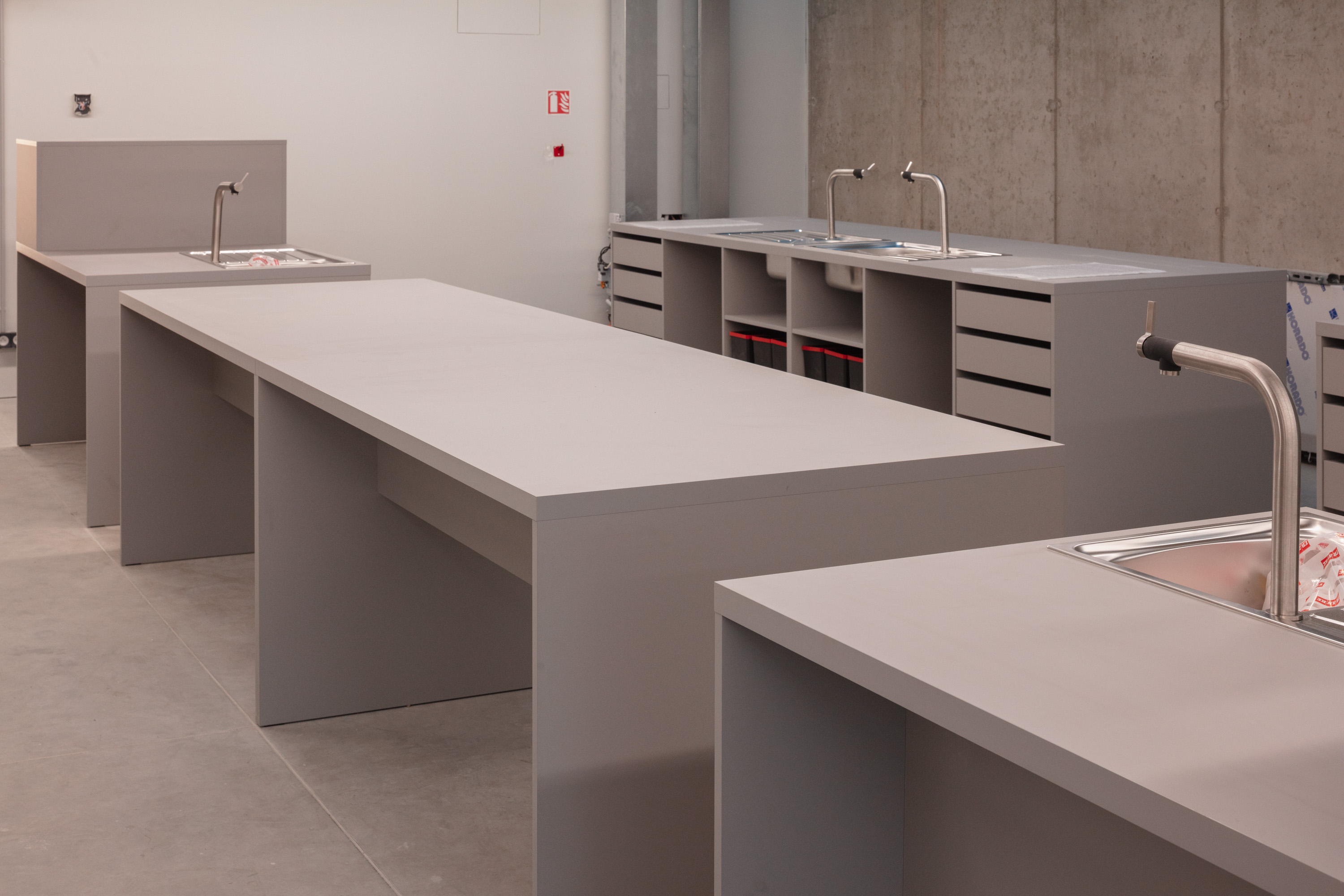 Vzhledem k tomu, že obzvlášť během klauzur studenti využívají dílenské zázemí prakticky nepřetržitě, architekti mysleli i na odpočinkovou zónu, se kterou sousedí sdílená kuchyně.