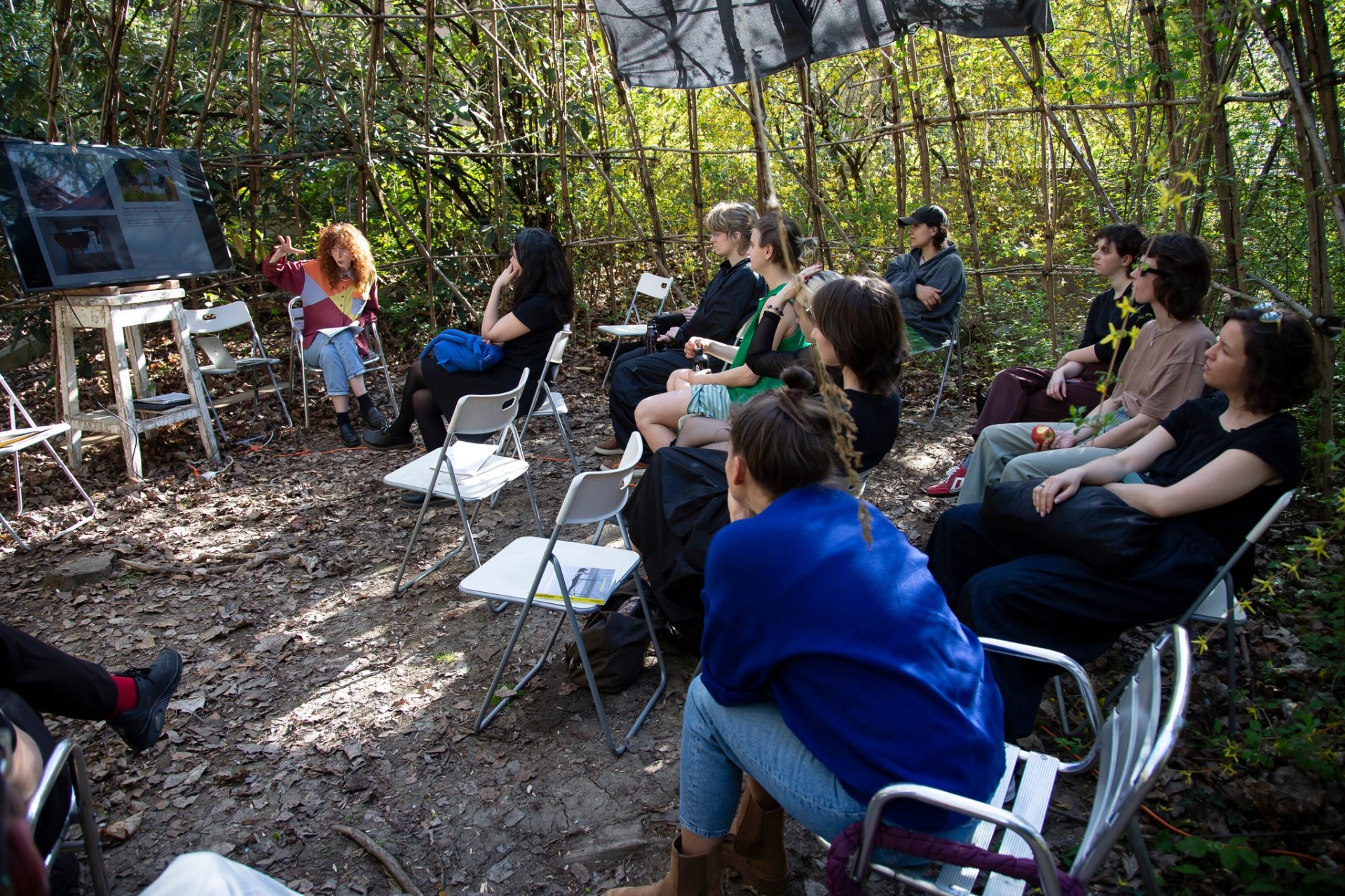 Seita ve své přednášce představila mezioborovou praxi na pomezí performance, experimentální pedagogiky, queer ekologie a vícedruhových spoluprací. Mluvila o projektech, které propojují tělesnost, feminismus, jazyk a péči – od tajného zahradnického spolku přes kukuřici jako alternativu k tradičním představám reprodukce až po kompost jako materiál queer učení napříč generacemi.