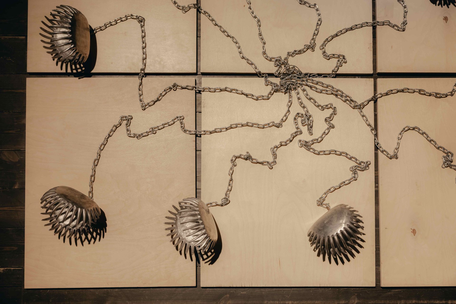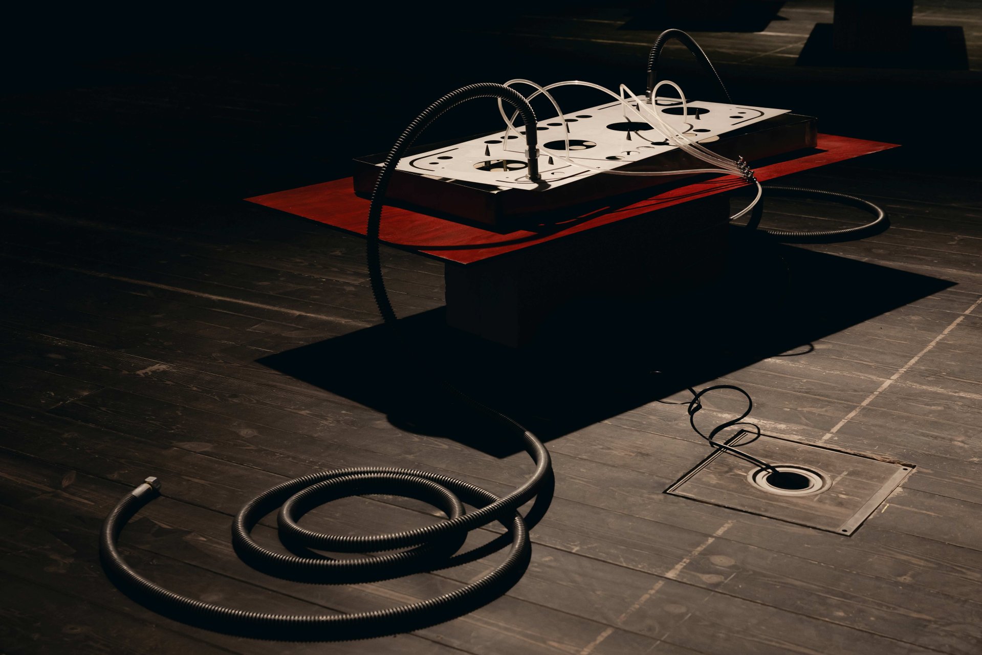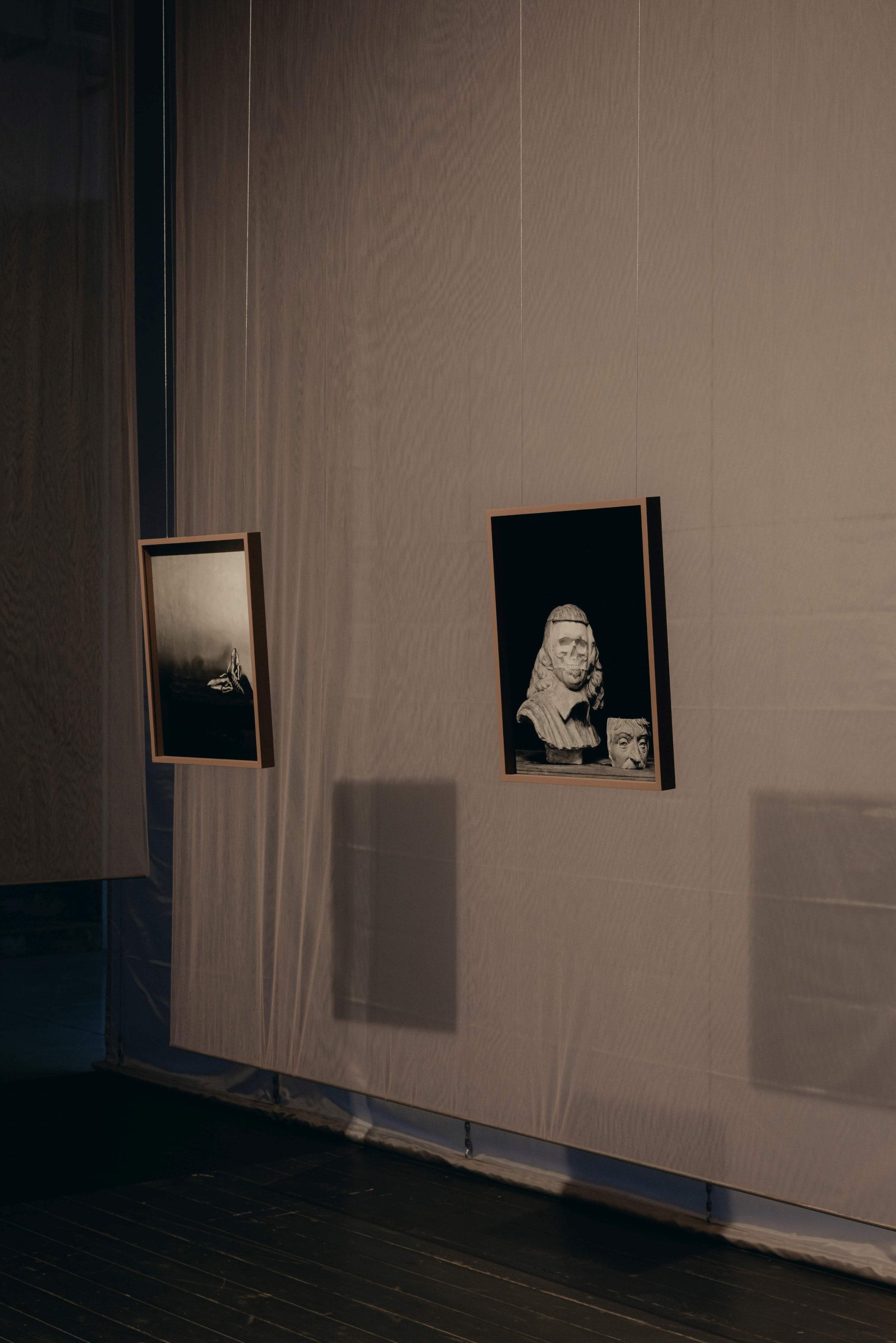 Poslání výstavy a samotná díla podtrhuje instalace studujících Ateliéru architektury II UMPRUM Adama Rýznara a Sofie Gjuričové. Expozici ohraničují poluprostupnou a prosvítající stěnou z tylové látky starorůžové barvy navozující pocit iluzorního bezpečí.