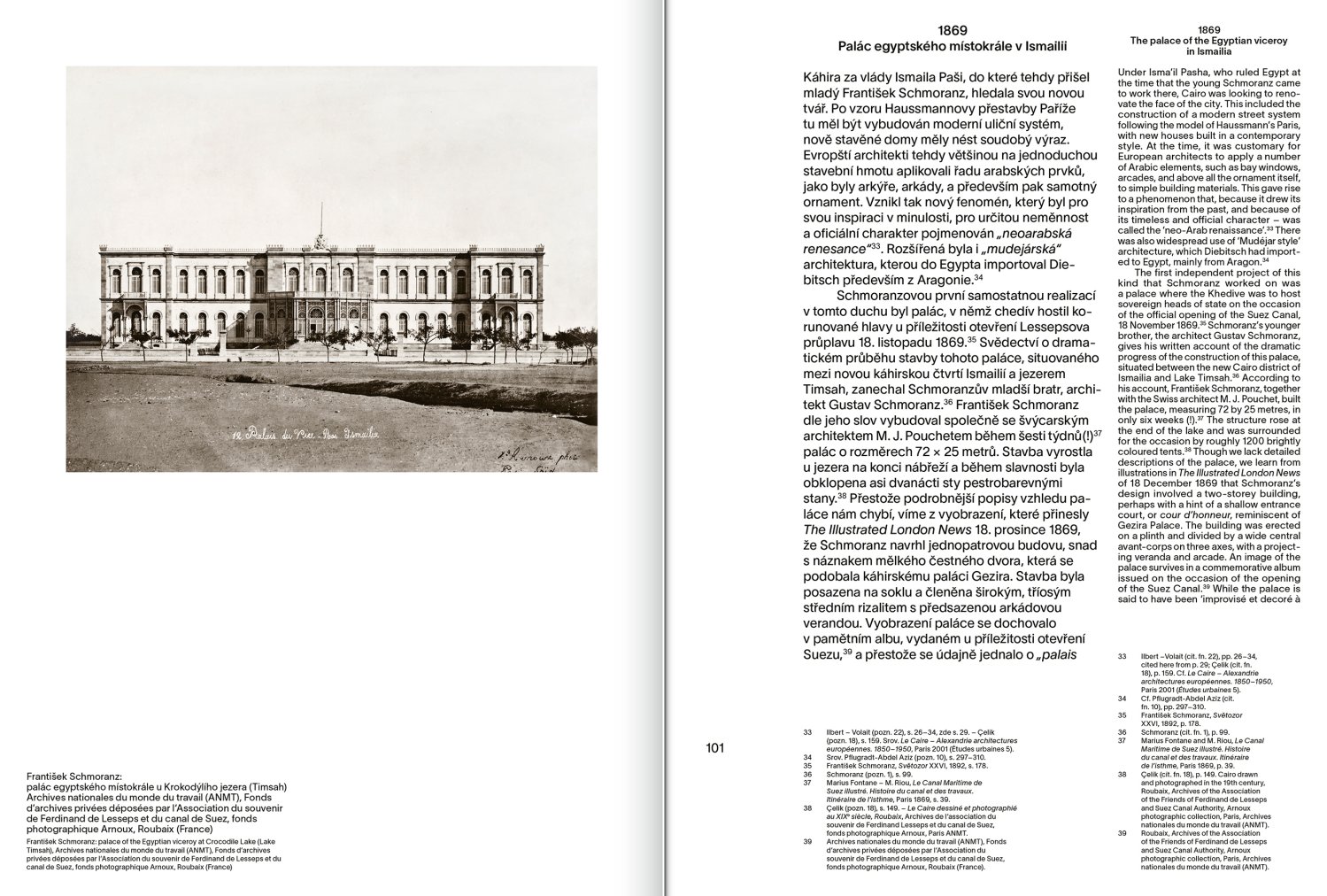 Rakouský architekt českého původu František Schmoranz mladší byl prvním ředitelem pražské Uměleckoprůmyslové školy a spolu s Janem Machytkou také projektantem její historické budovy. Vedle toho však patřil k průkopníkům archeologicky fundovaného orientalismu. V letech 1868−1872 působil v Egyptě a po svém návratu do Evropy byl pověřen projektem egyptské skupiny pro světovou výstavu ve Vídni, která se konala roku 1873. Jako exkluzivní znalec islámské architektury pak v tehdejším Rakousku realizoval řadu výstav a architektonických návrhů. Publikace je první Schmoranzovou monografií, která zahrnuje celé jeho architektonické i designérské dílo. Součástí knihy je analytická studie od profesora Jindřicha Vybírala, která interpretuje a kontextualizuje Schmoranzovo dílo, a zkompletovaný přehled umělcových děl (oeuvre catalogue), jehož autorem je Milan Němeček. Kniha vychází česko-anglicky. Grafika Štěpán Malovec.