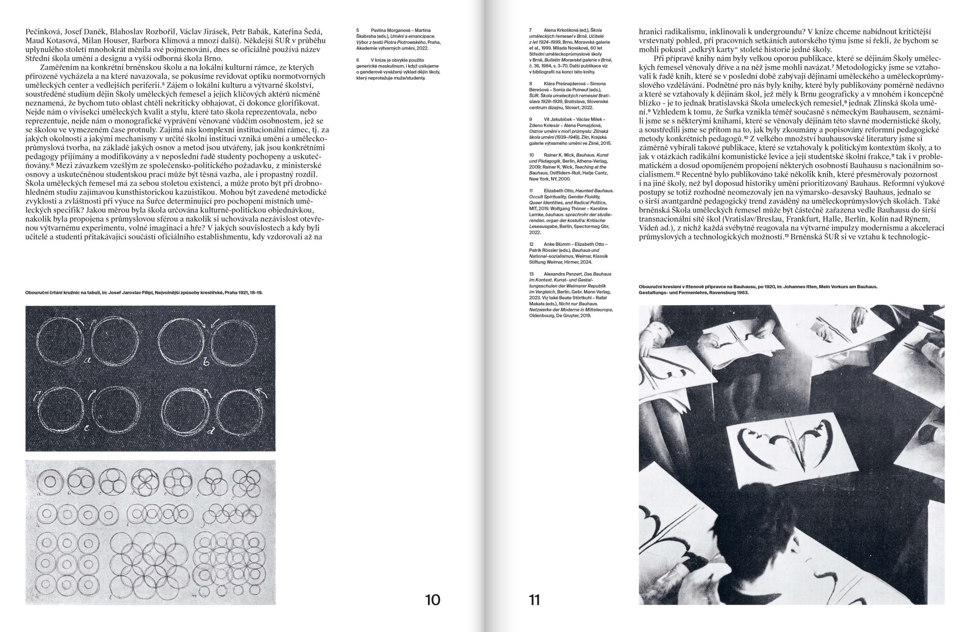 Jak se v Brně rodilo moderní umění a design, jaké byly metody uměleckoprůmyslového vzdělávání? Publikace zachycuje stoletý příběh jedné středoevropské školy, v níž se setkávaly lokální folklorní tradice s experimentální uměleckou avantgardou, poslušnost vůči politickému establishmentu s odvážným volnomyšlenkářstvím a tradiční řemeslná zručnost s novými médii. Představuje výsledek týmového výzkumu a přináší řadu původních textových studií i dosud neznámý obrazový materiál. Vychází česko-anglicky za podpory Ministerstva kultury ČR v rámci projektu NAKI III / Místa tvořivosti* / Uměleckoprůmyslové vzdělávání – konstrukce identit, záchrana minulosti a design budoucnosti. Grafika Jiří Mocek. Kniha doprovází stejnojmennou výstavu** v Domě umění města Brna (22. 10. 2025–8. 3. 2026).
