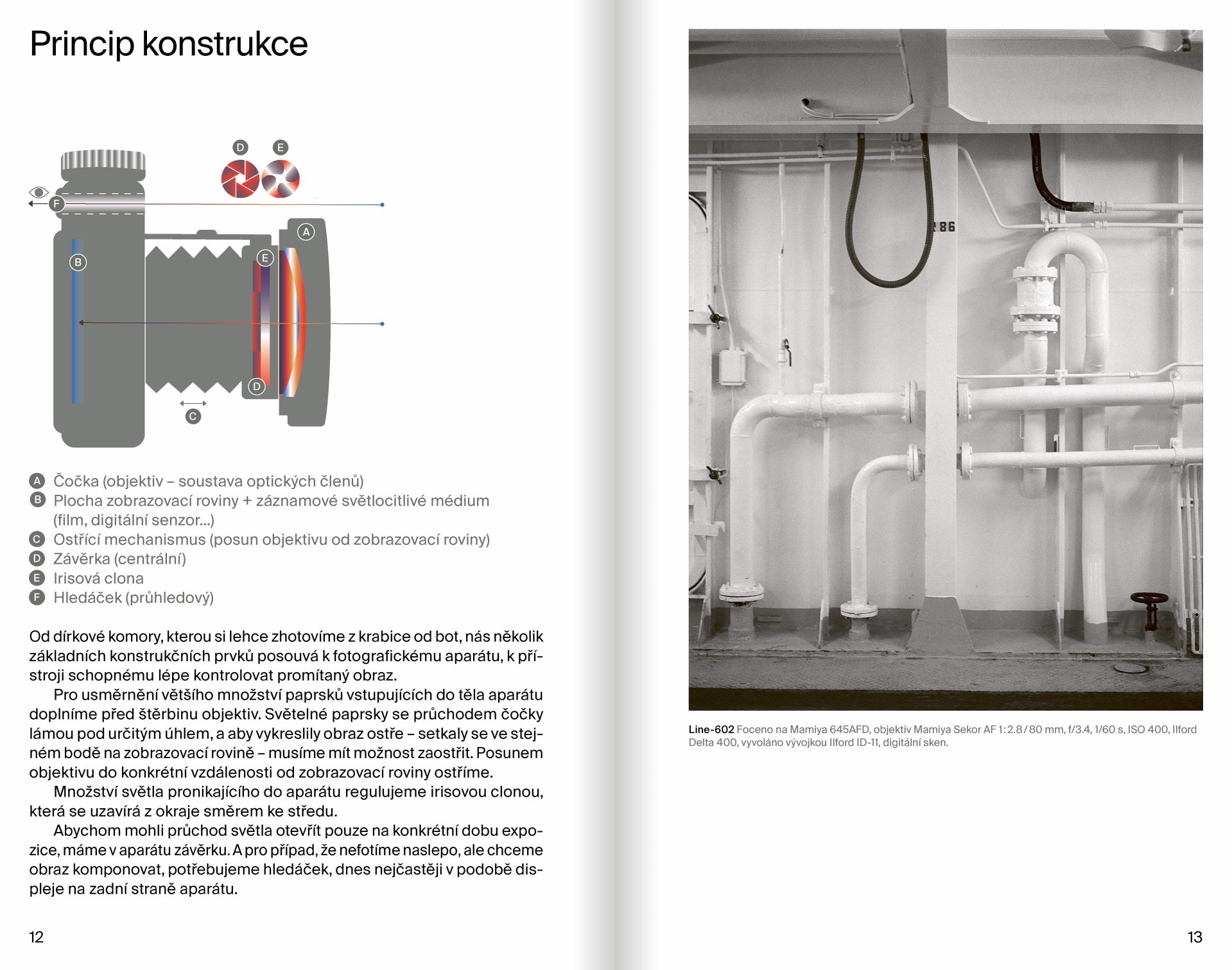 Dvě století od vzniku první dochované fotografie zažívá toto médium nebývalý rozmach. Fotografie se stala nedílnou součástí mezilidské komunikace a hlavním nástrojem pro tvorbu obrazů je dnes mobilní telefon. Algoritmy výpočetní fotografie posouvají uživatele digitálních zařízení do vztahu blízkého konceptu Aparát–Operátor, jak jej popsal Vilém Flusser. Tato příručka principu fotografického média si klade za cíl přiblížit čtenáři, co se odehrává na pozadí algoritmů v „black boxu“ fotografického aparátu. Východiskem pro pochopení média jsou poznatky fotografie 20. století. Autor se v knize často odkazuje na práci Ansela Adamse a ukazuje, s jakými problémy při zachycení světla se musejí vyrovnávat i současné technologie. Zaměřuje se na vznik fotografie na základě fyzikálních zákonů, jež platí univerzálně. Cílem není čtenáře zahltit obsáhlými texty plnými odborných termínů, ale naopak srozumitelně a za pomoci jednoduchých ilustrací objasnit základní principy. Publikace vychází z autorových poznámek k výkladu technologie fotografie. Místy jsou pasáže rozvinuty do kratšího textu, většina však zůstává ve své stručnosti ve formě poznámek k přednášce nebo výkladu. Knížka obsahuje text renomovaného umělce a pedagoga FAMU Hynka Alta „Bez názvu (Kočka, aparát a filtr)“. Fotografie Václav Kopecký, ilustrace Kristýna Marková, grafika Barbora Tomová.